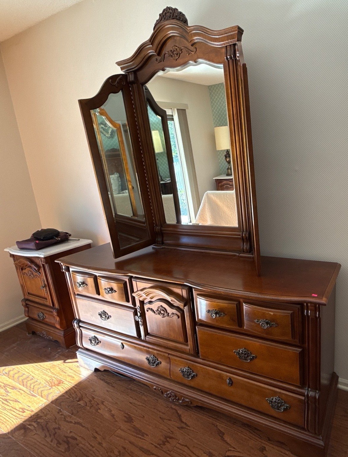 803 Dresser with Mirror and Drawers, Featuring Carved Ornamentation