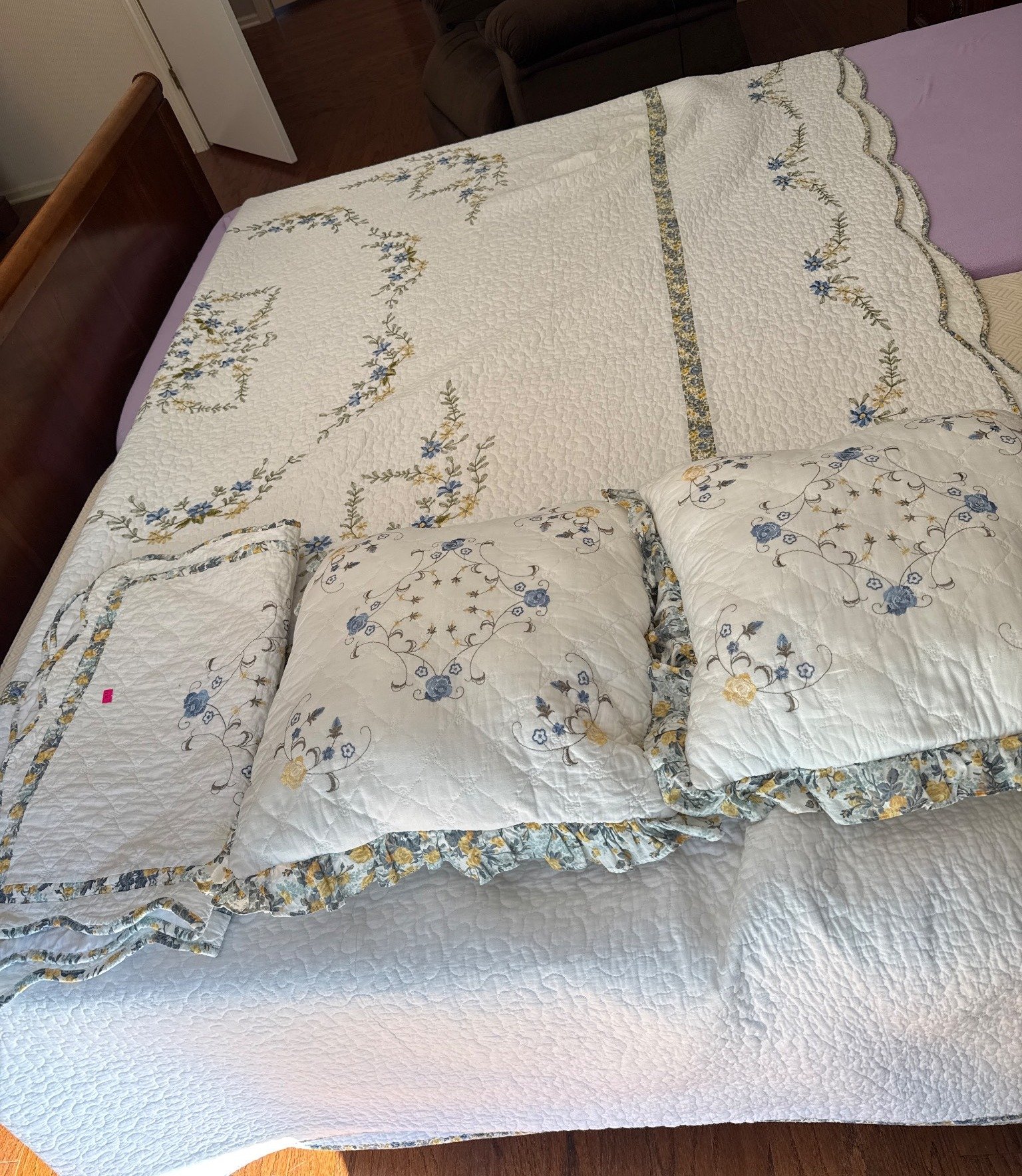 808 Quilt with Floral Embroidery, 2 Shams & 2 Pillows