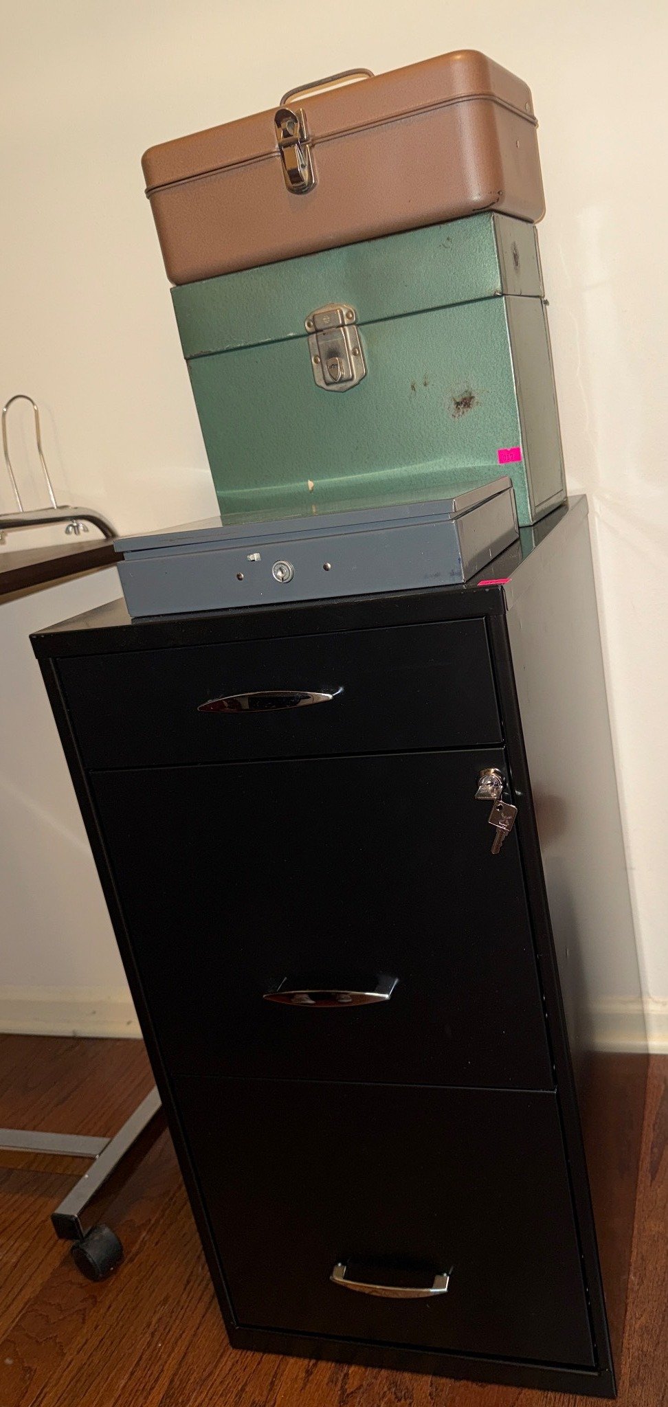 817 Black Filing Cabinet with 3 Compartments and 3 Metal Storage Boxes