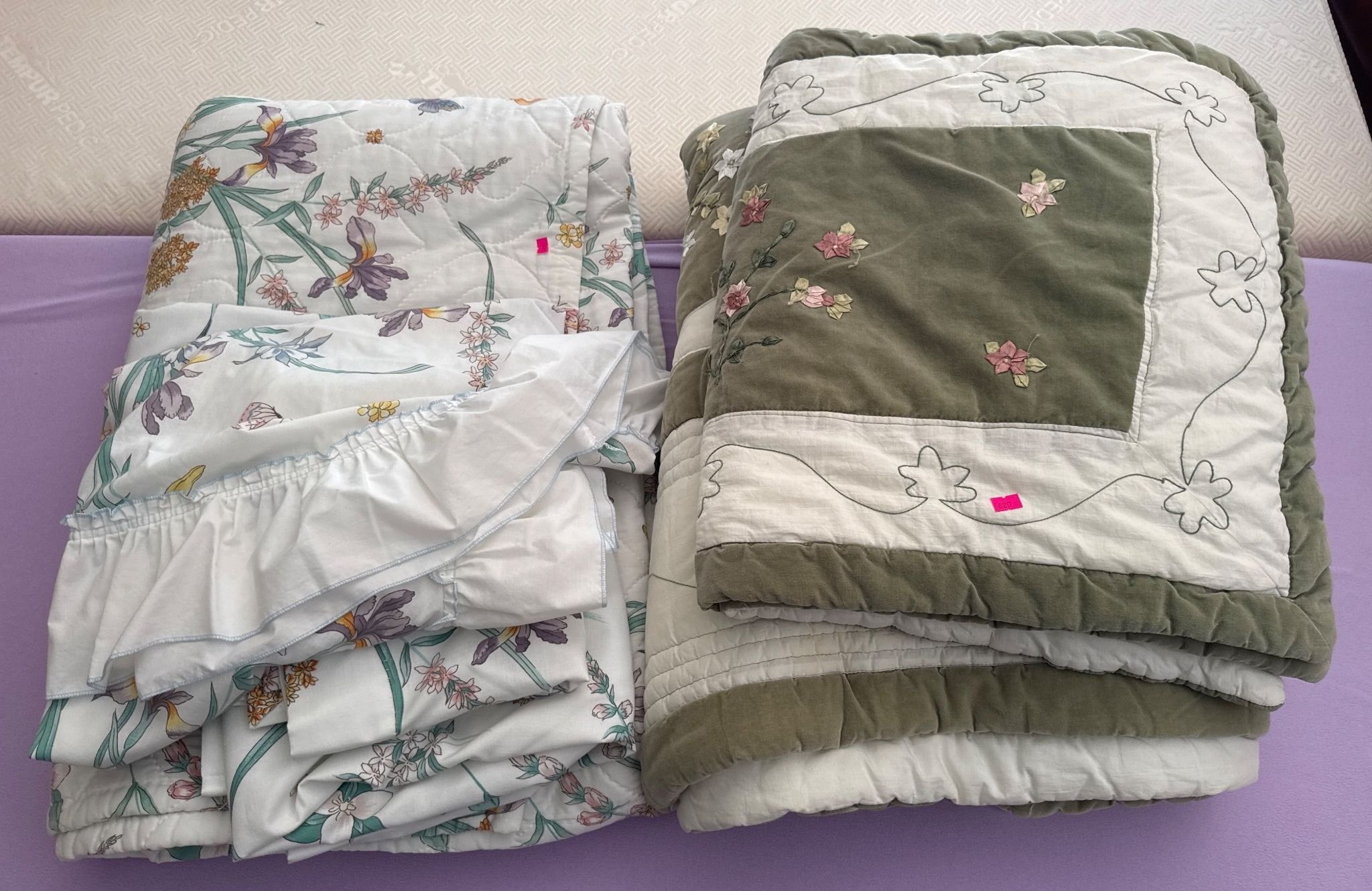 820 2 Quilted Bedding Pieces with Floral Designs