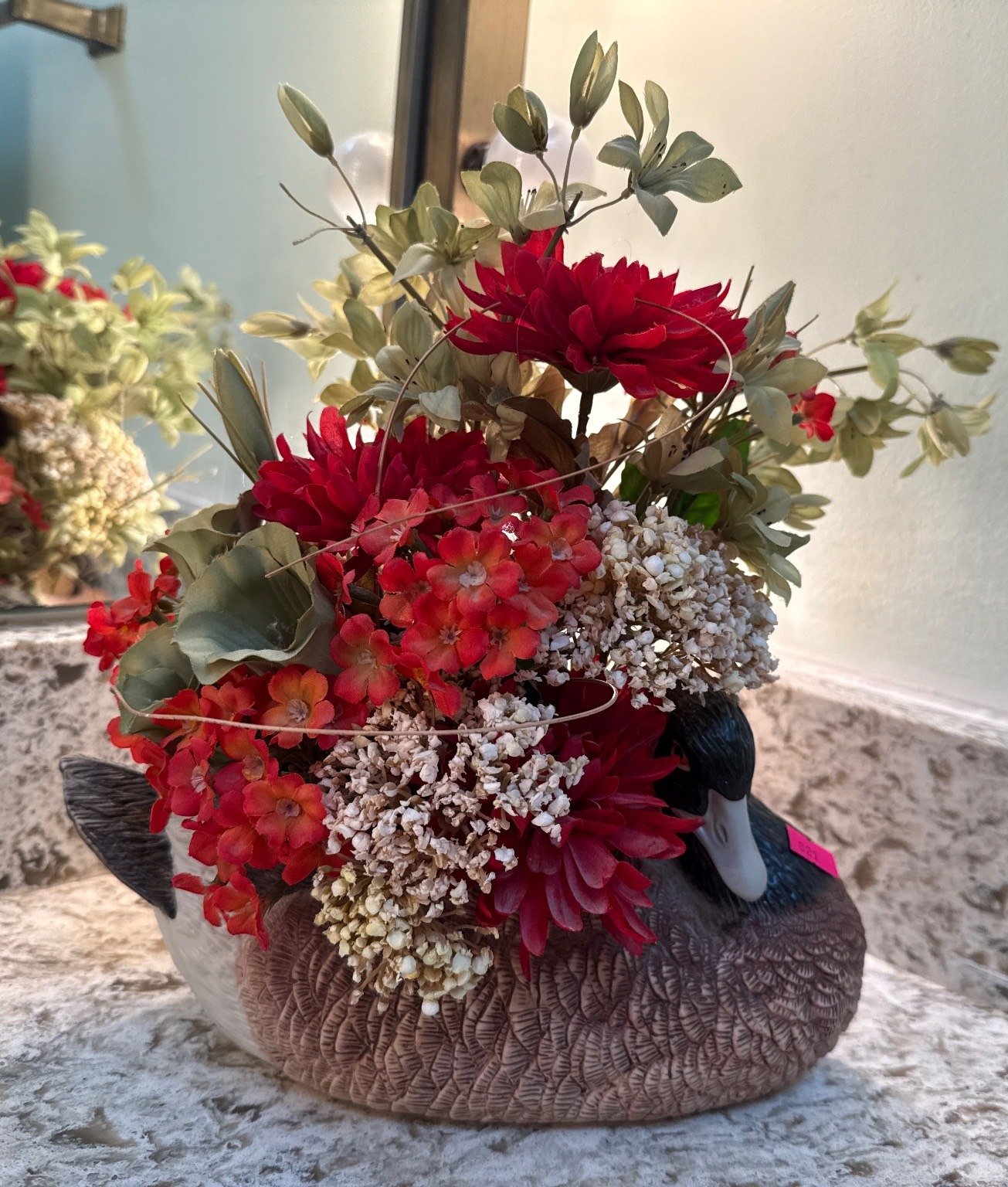 821 Duck-Shaped Ceramic Vase with Artificial Floral Arrangement
