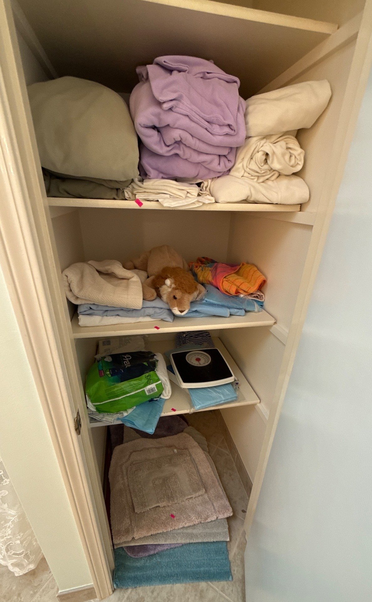 822 Household Items Including Textiles, Mat Sets, and Scale