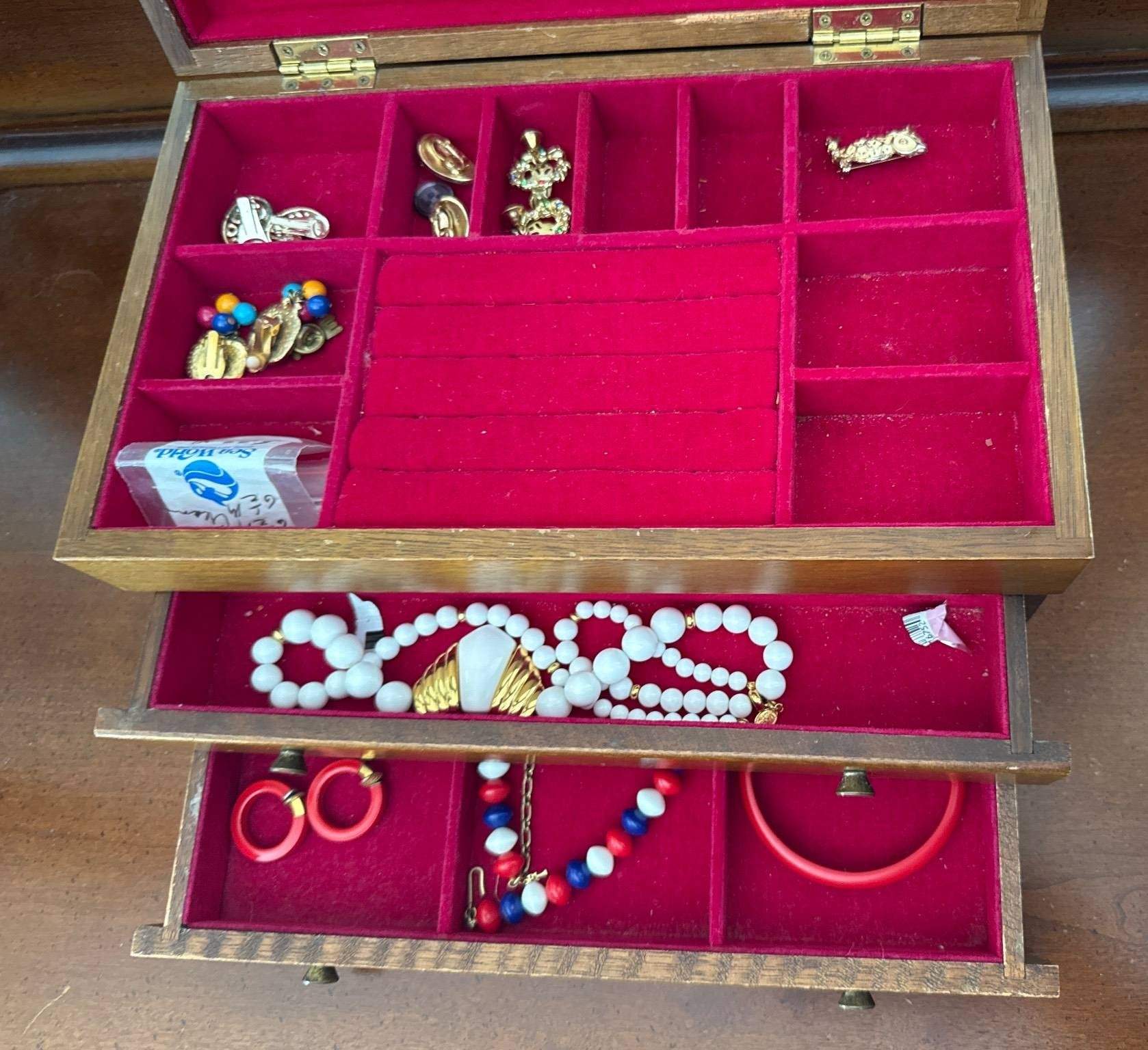 823 Jewelry Storage Box with Red Felt Lining and 2 Drawers