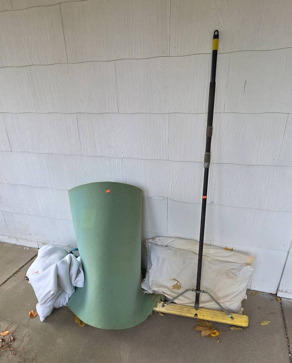 1001 Foam Padding, Cleaning Rag, and Push Broom with Metal Handle