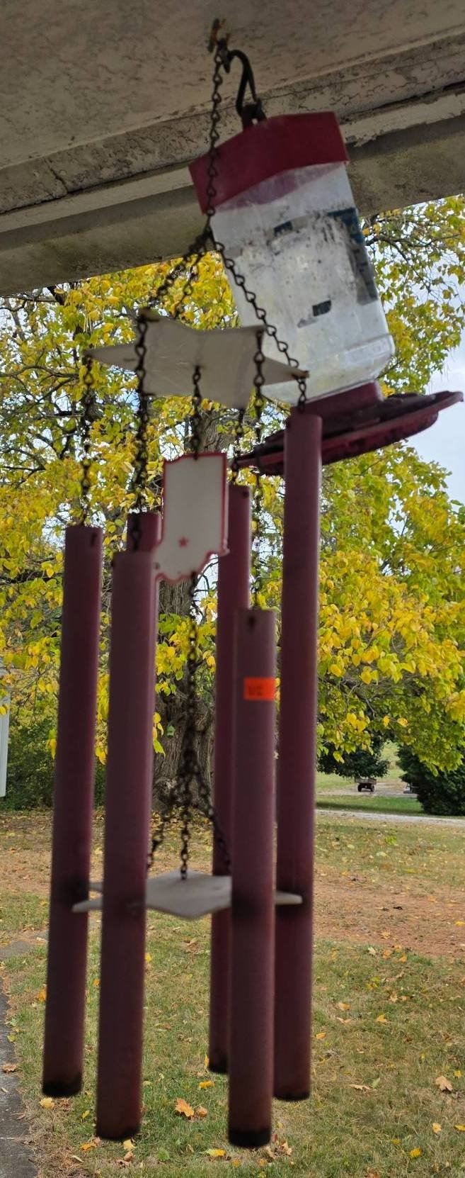 1002 Metal Wind Chimes with Plastic Hummingbird Feeder , 9?, 25? H