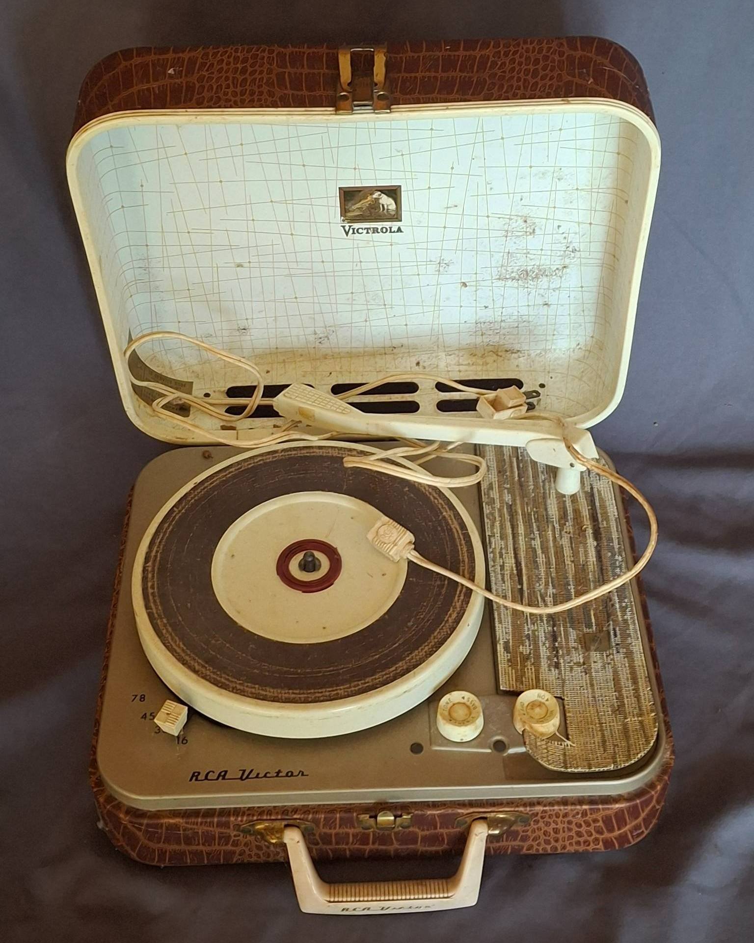 103 RCA Victor Portable Record Player with Faux Crocodile Exterior 12?x5?x10?