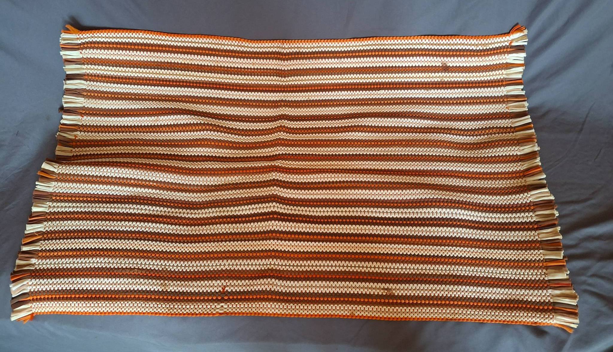 110 Handwoven Striped Cotton Rug with Fringe Accents 38?x24?