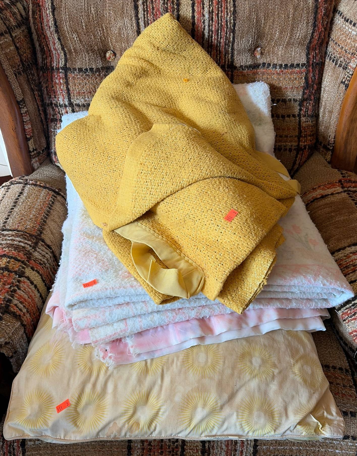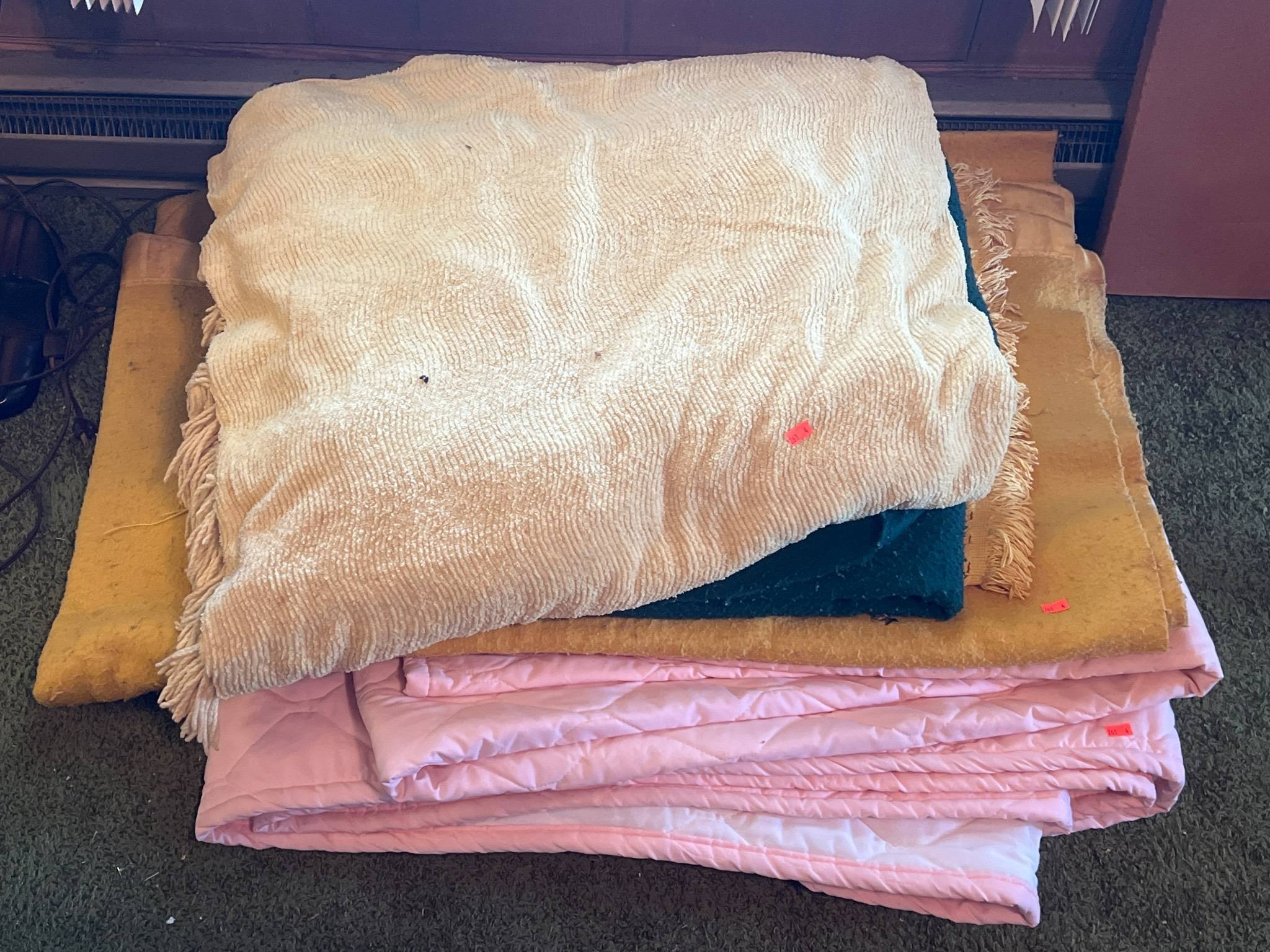 111 Two Blankets and a Pillow with Visible Wear (chair not included)