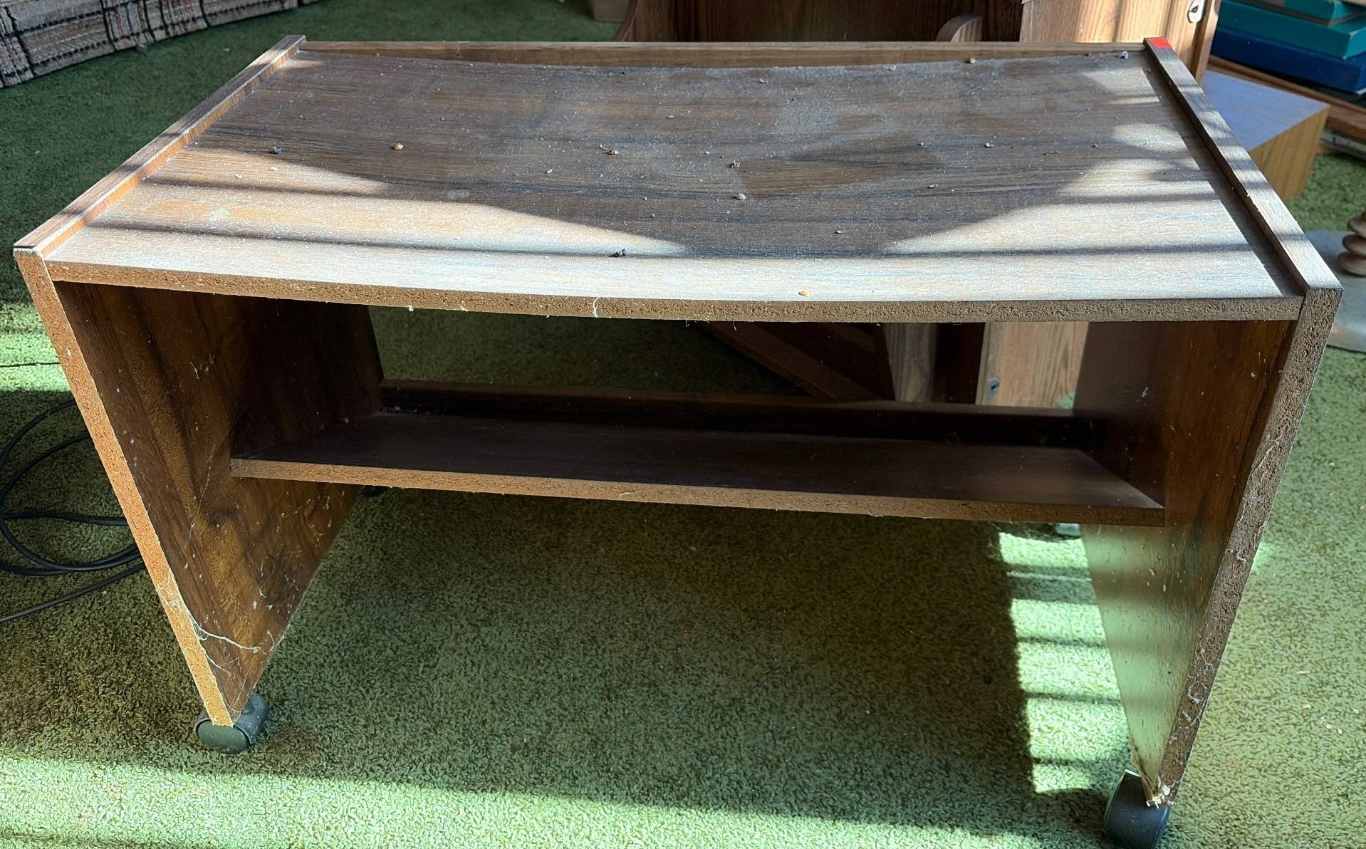 115 Rolling Storage Table with Laminate Finish and Open Shelf, 28”x15”x18”