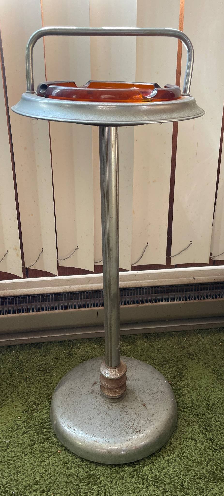 117 Metal Pedestal Ashtray with Amber Glass Insert, 26”H