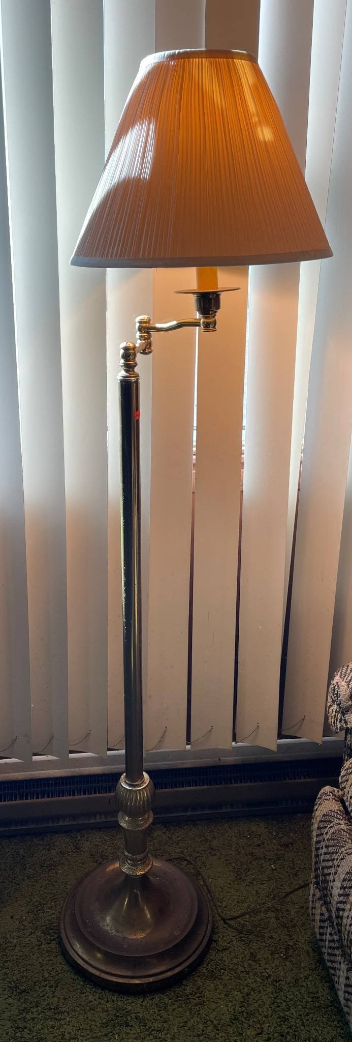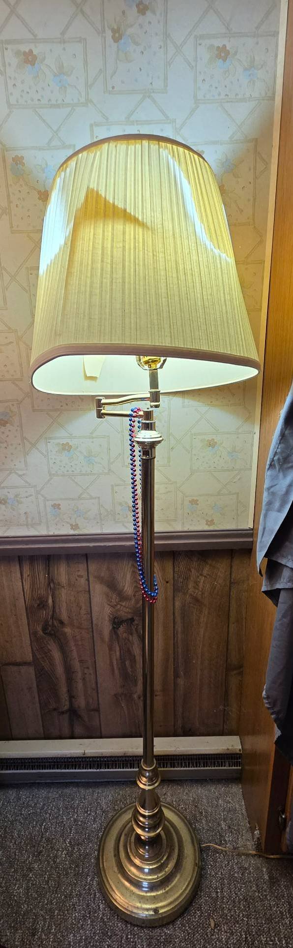 118 Brass Floor Lamp with Swing Arm and Pleated Fabric Shade, 58”H