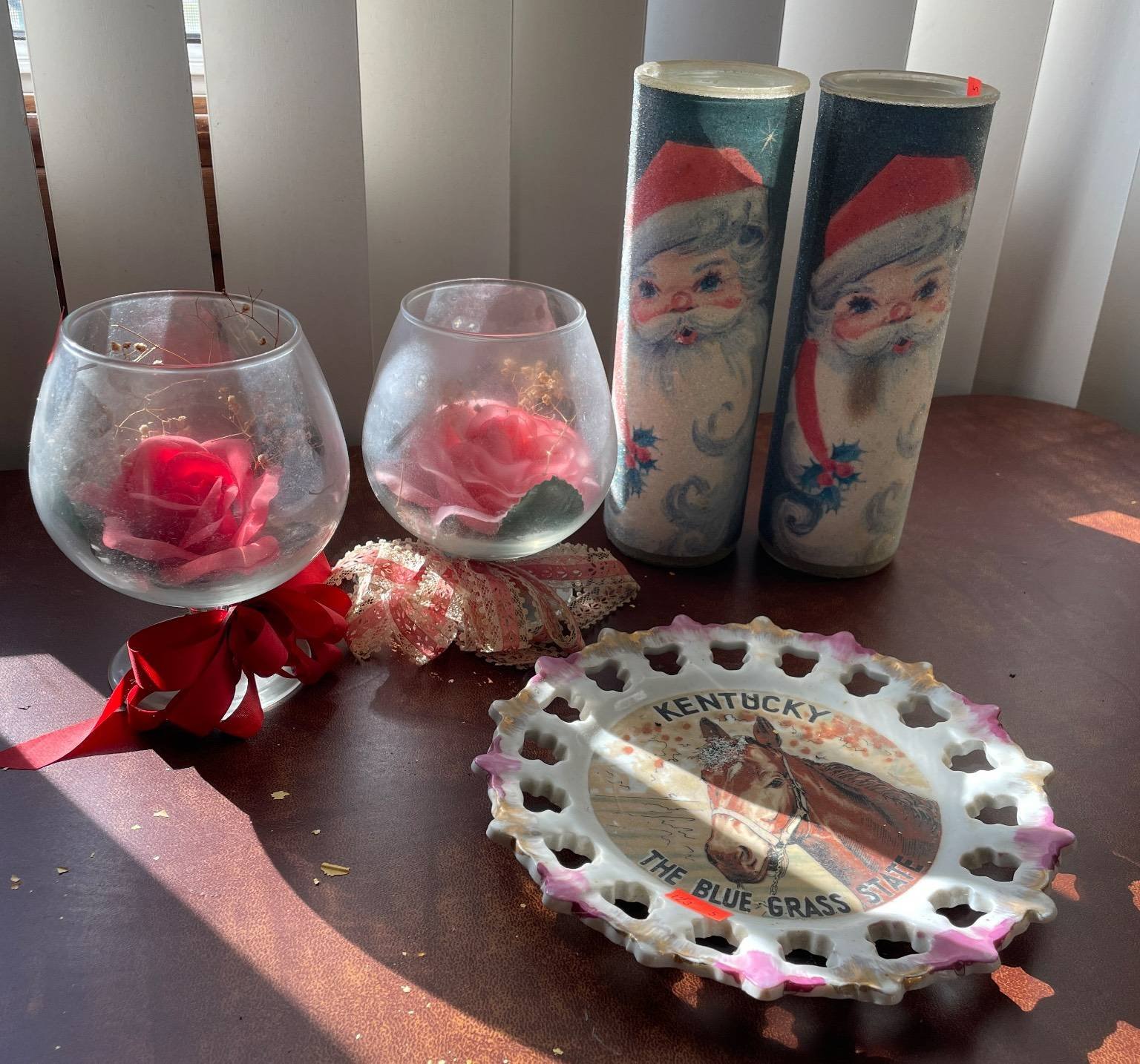 123 Holiday-Themed Candle Holders, Glass Rose Arrangements, and Kentucky Souvenir Plate