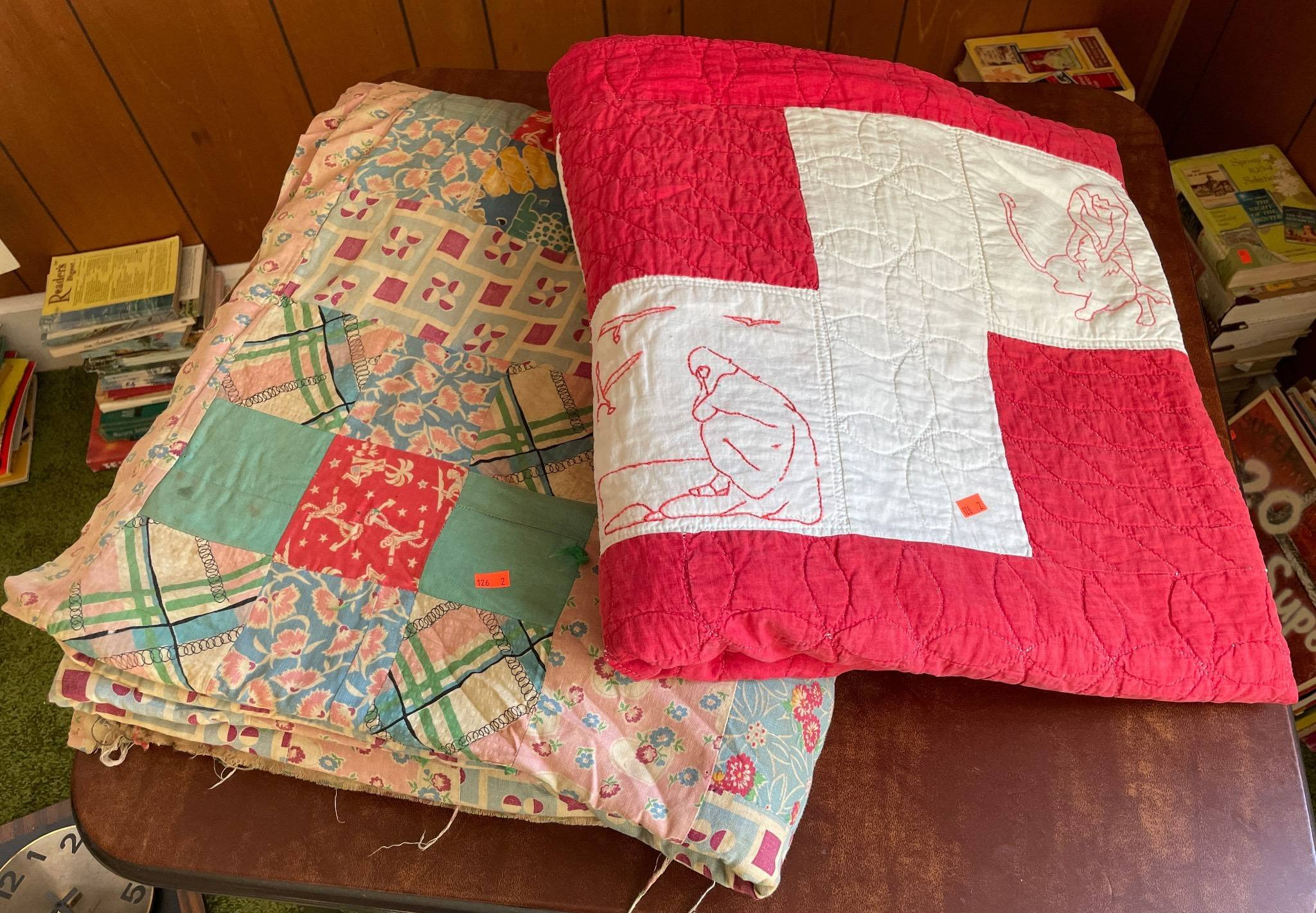 126 Two Handmade Quilts With Embroidered and Patchwork Designs, some fraying