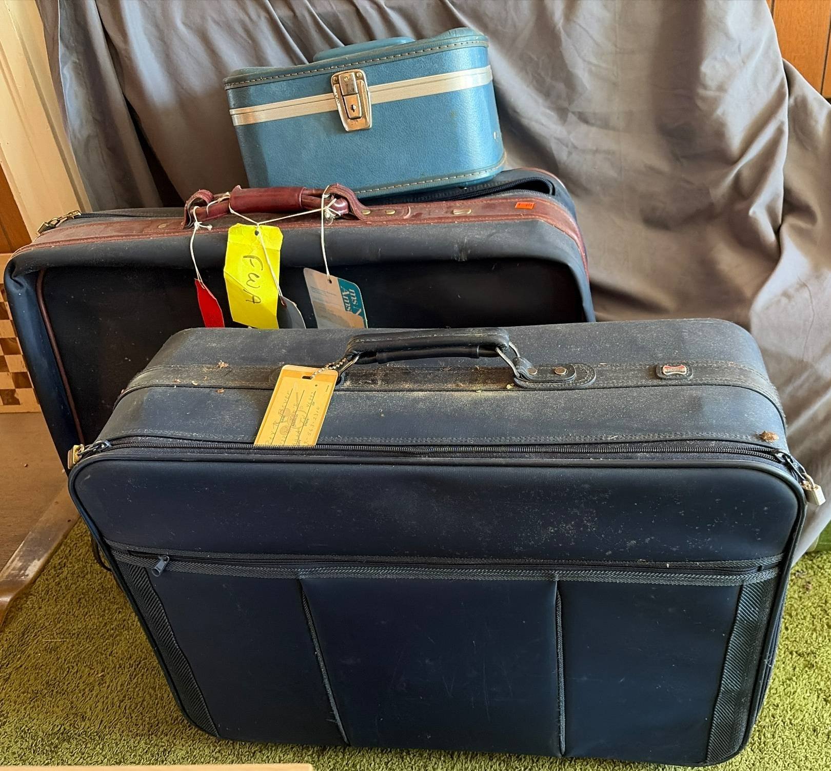 137 2 American Tourister Suitcases and 1 Small Blue Travel Case, 26”x20”-12”x10” (visible wear)