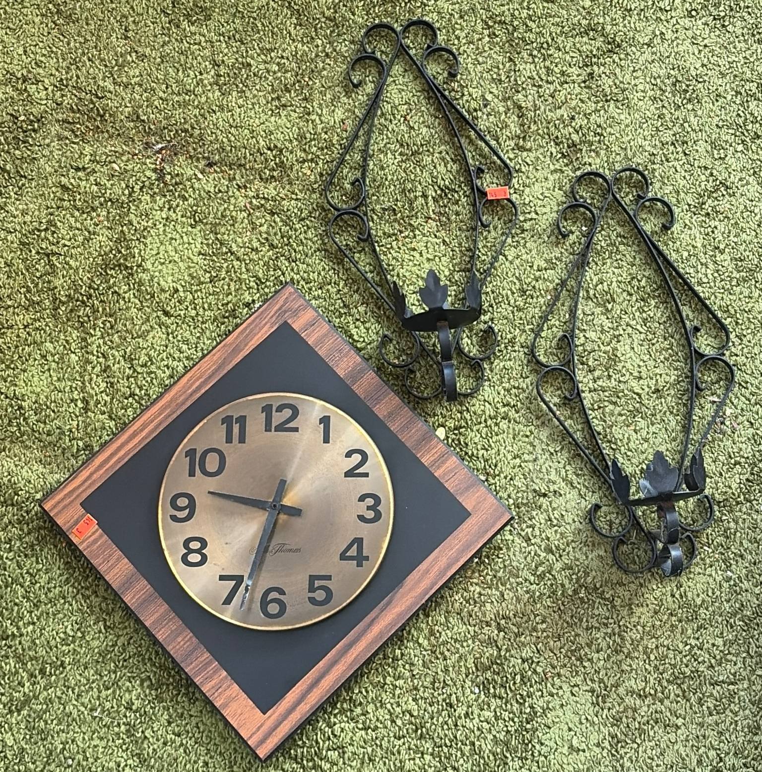 145 Seth Thomas Wall Clock and 2 Metal Candle Holders, 12”-19”