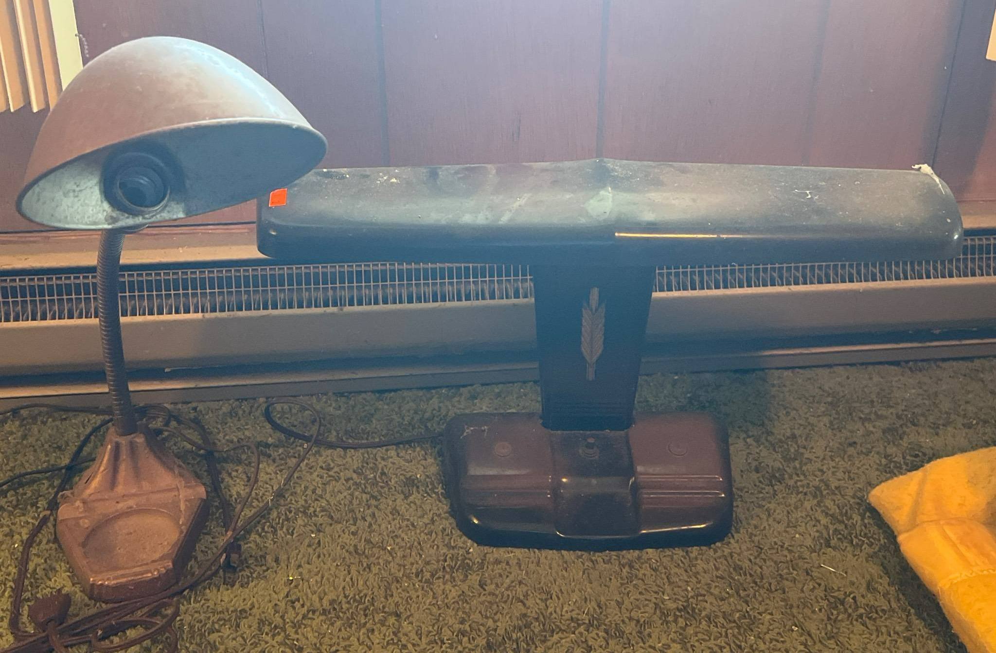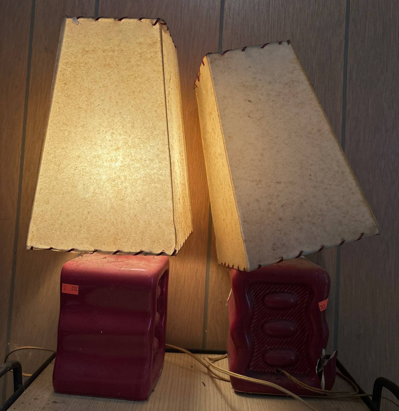 202 2 – Table Lamps with Red Bases & Rectangular Shades (One Broken)