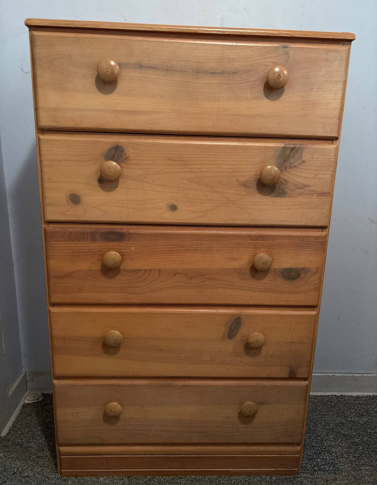 218 5-Drawer Chest with Circular Knob Pulls 43.5”H x 26.5”L x 15.5” W