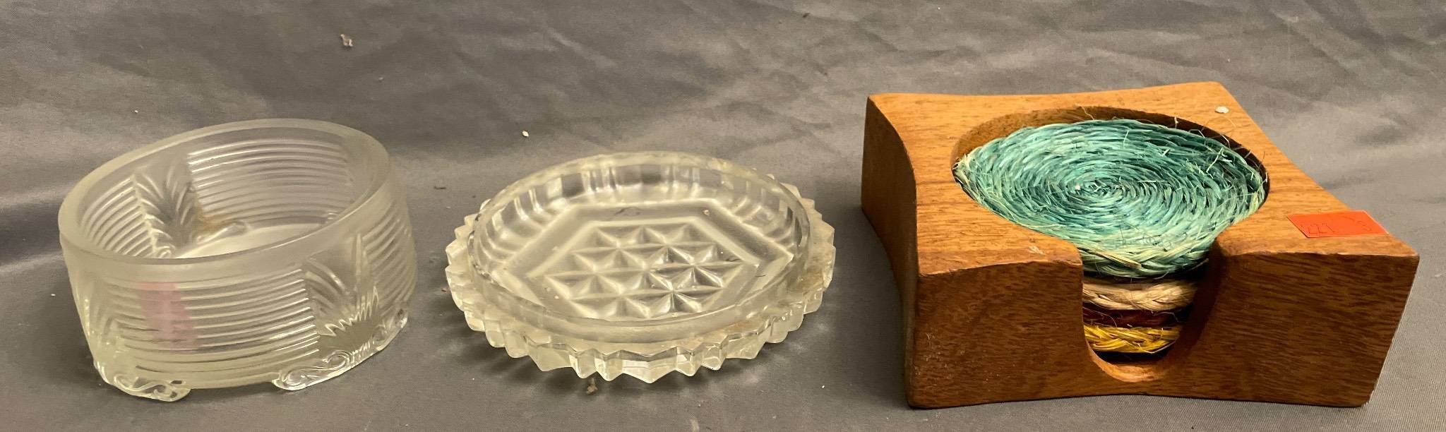 221 Glass Dishes and Coasters with Holder 3.75” – 4.75” L