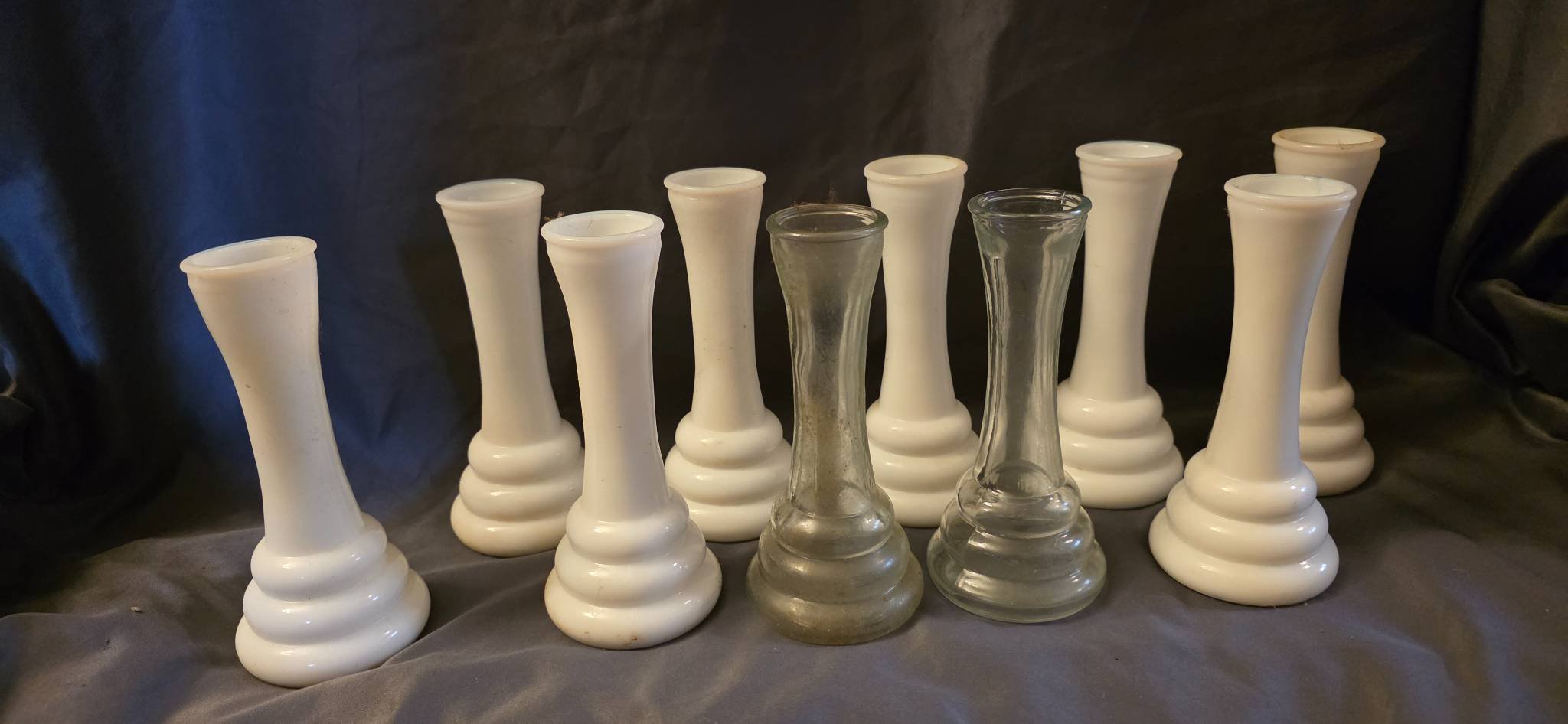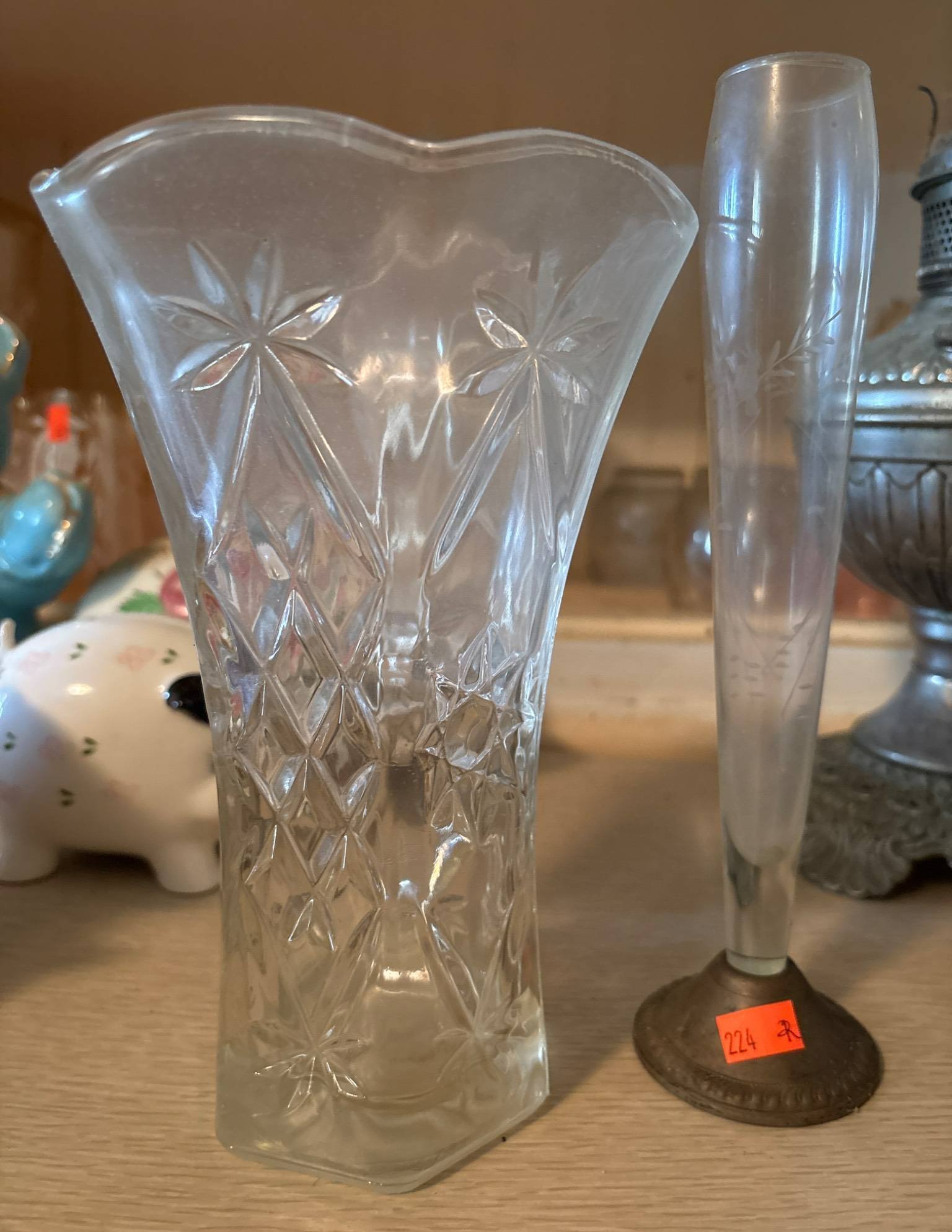 224 Pressed Glass Vase & Frosted Glass Vase with Metal Base 8”-9.5” H