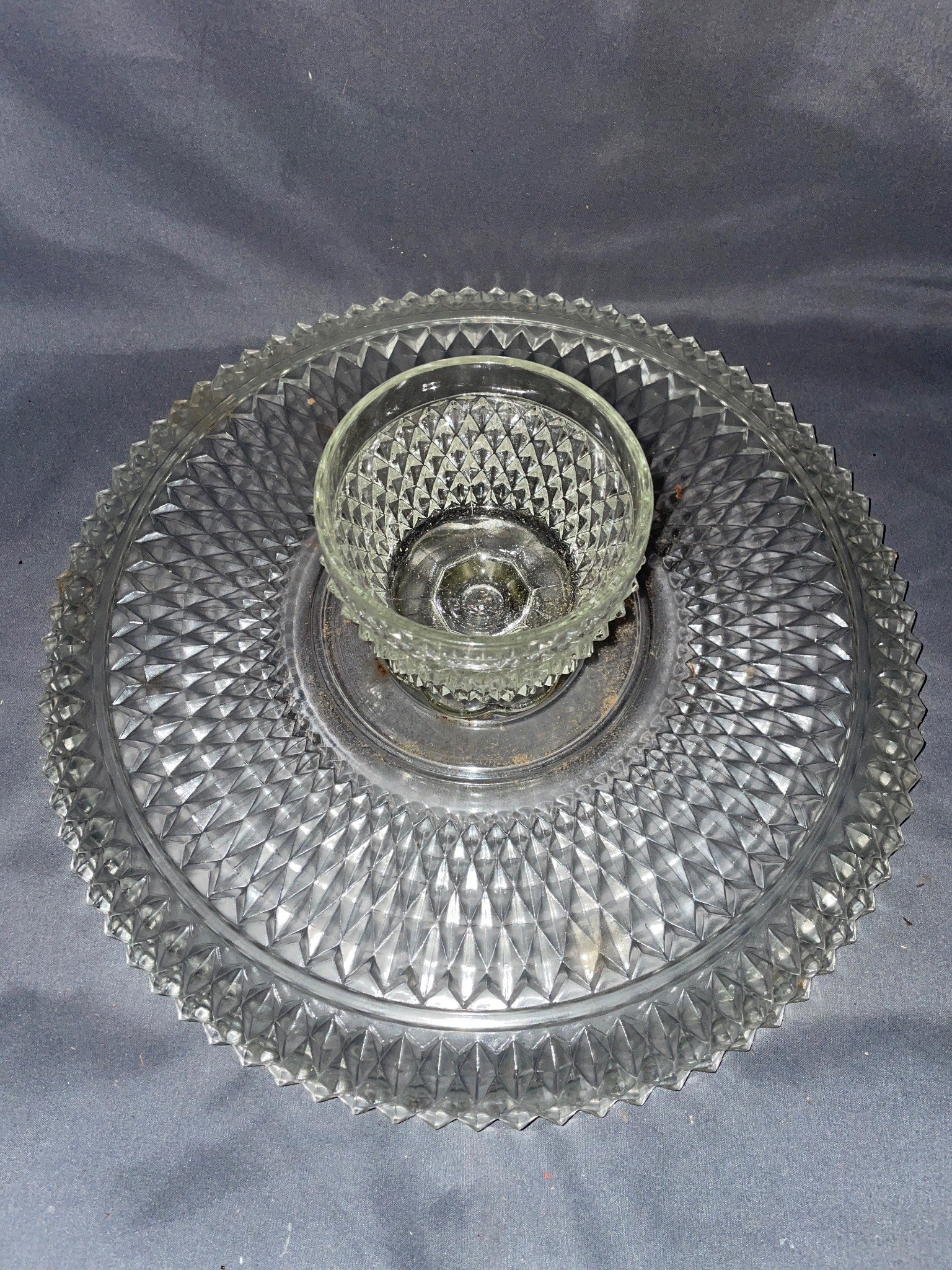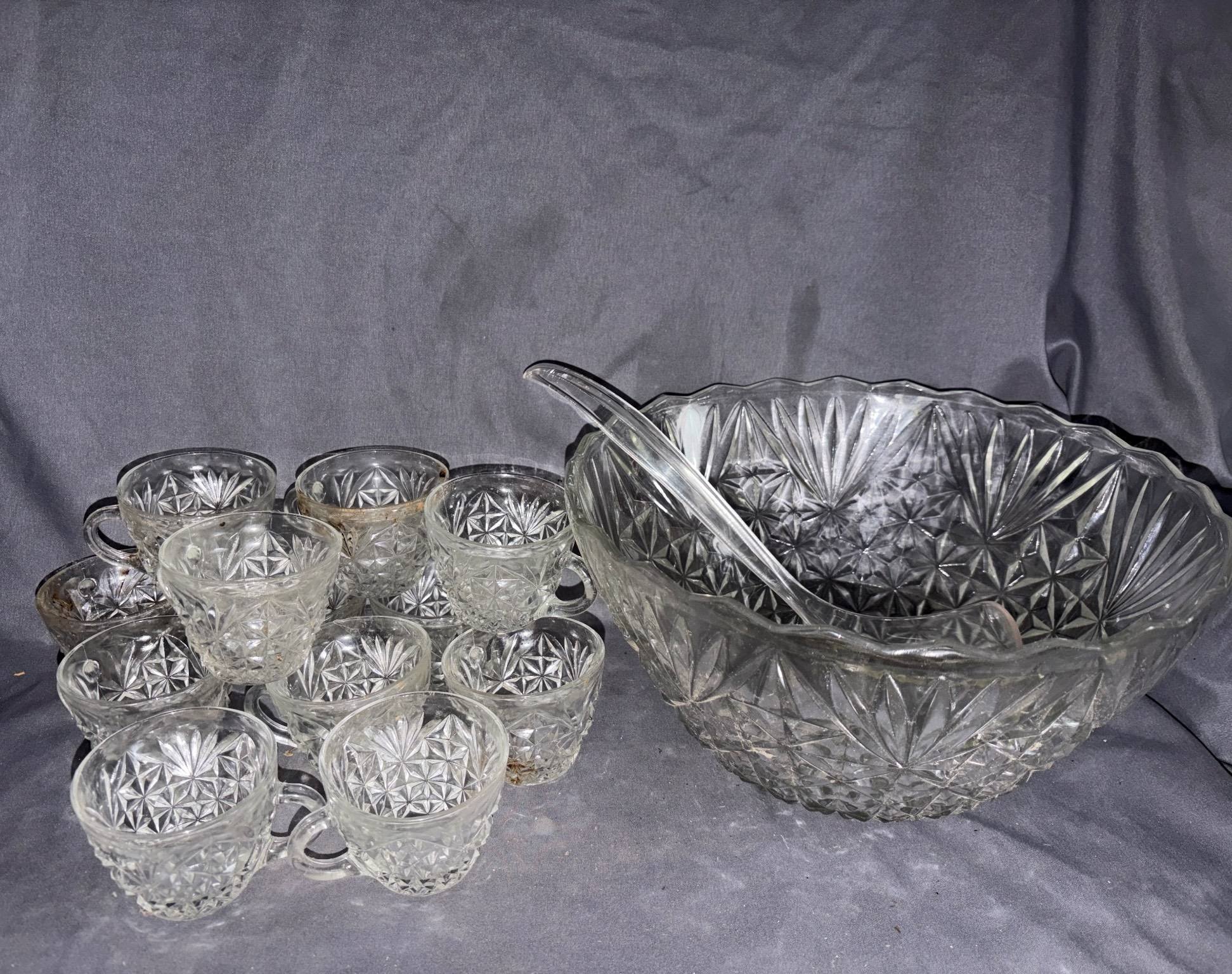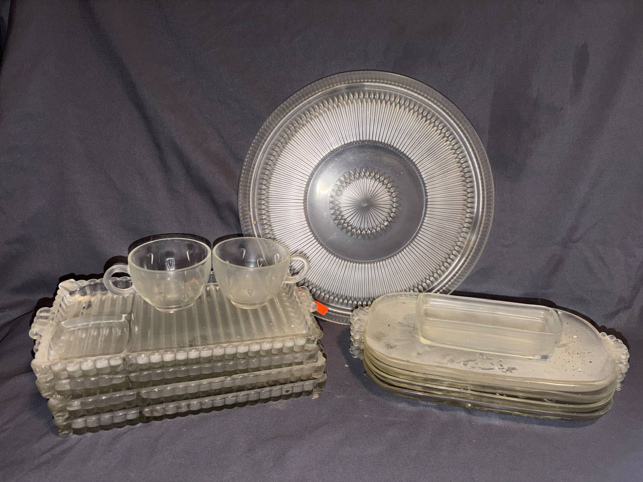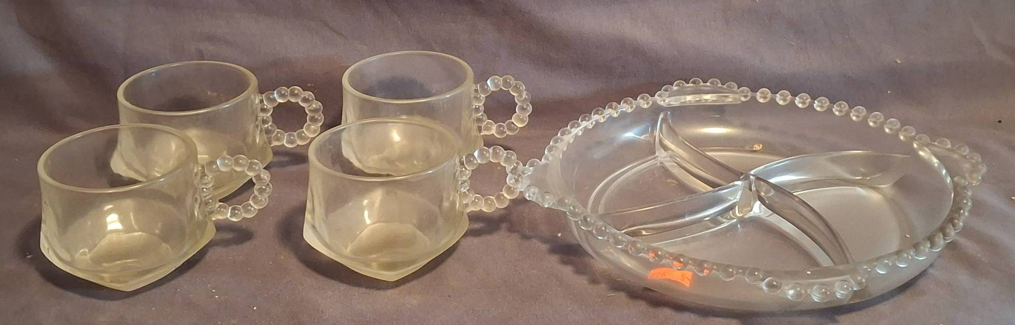 228 Clear Glass Divided Tray with Beaded Edge & 4 – Matching Cups