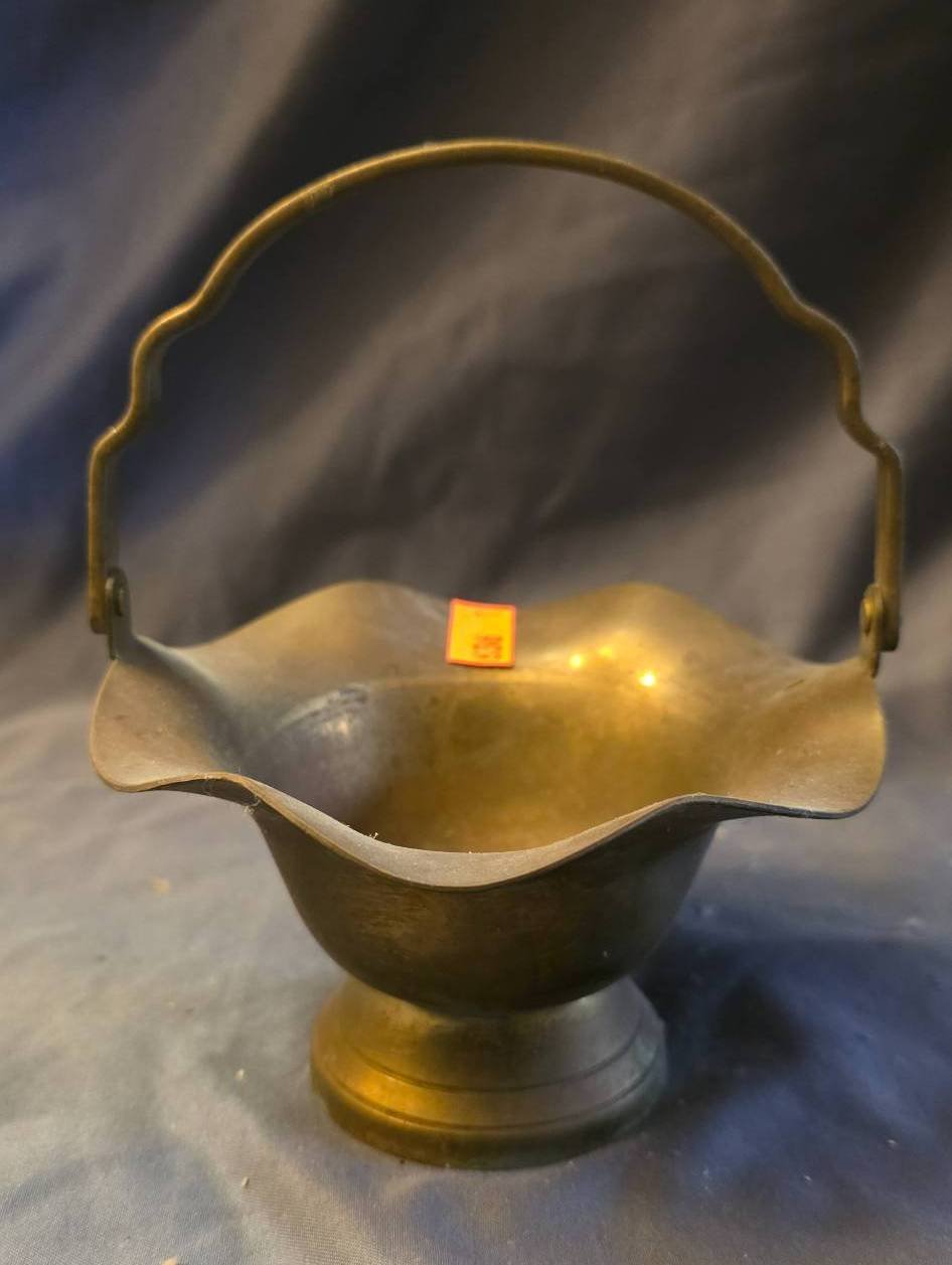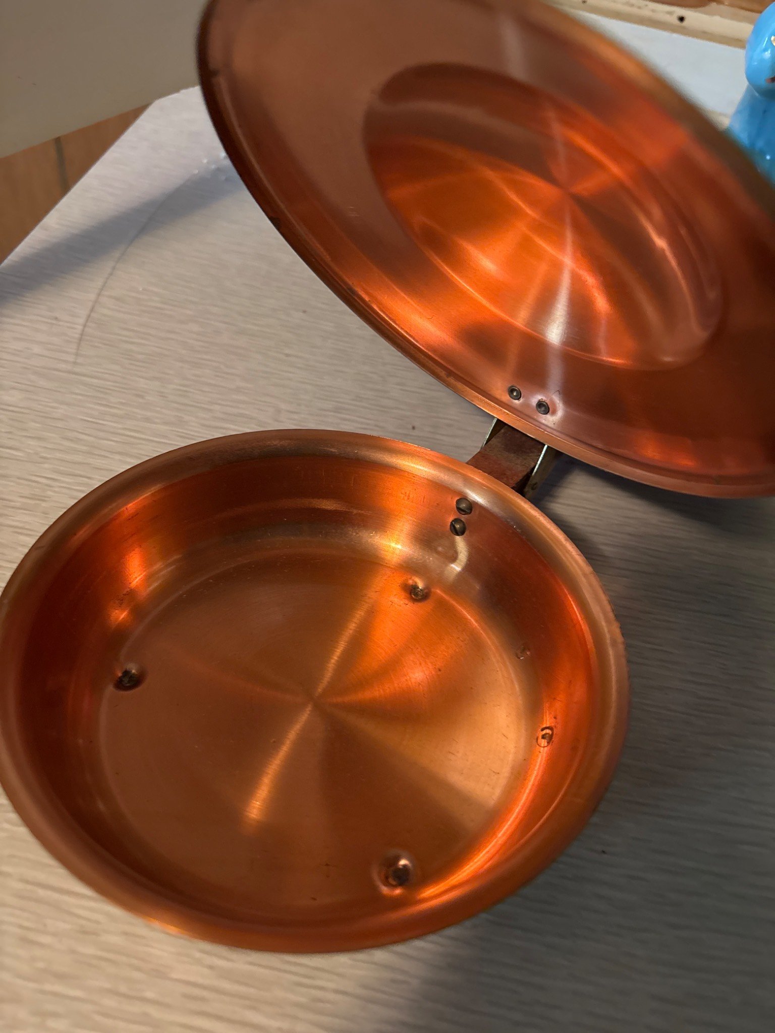 229 Copper Hinged Pan with Brass & Wood Handles 10.5” L