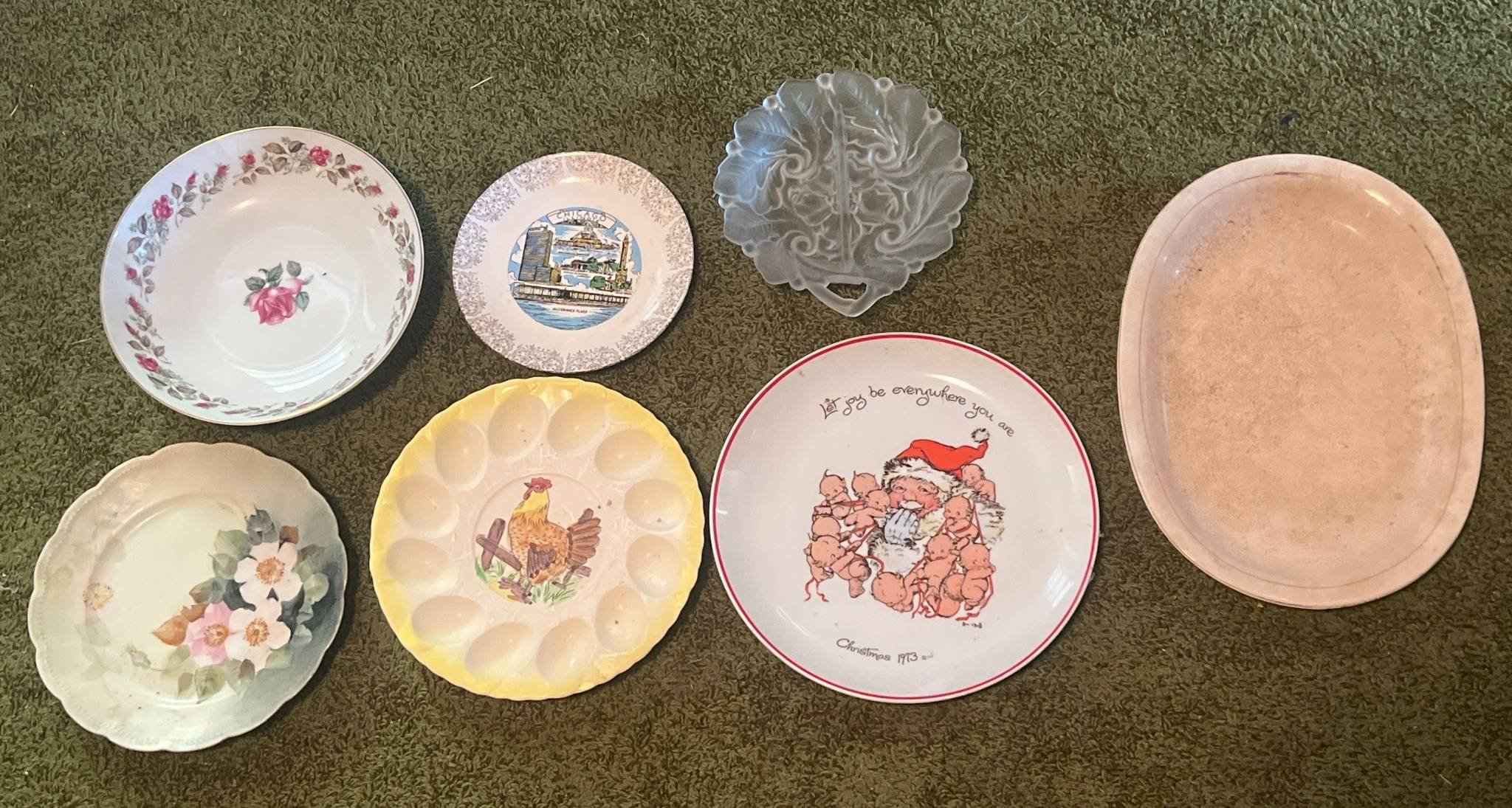 236 Hand Painted Plates and Platters Inc. Kewpie, Moss Rose and Curtis Art Studio, 7” x 7” – 10” x 13.5”