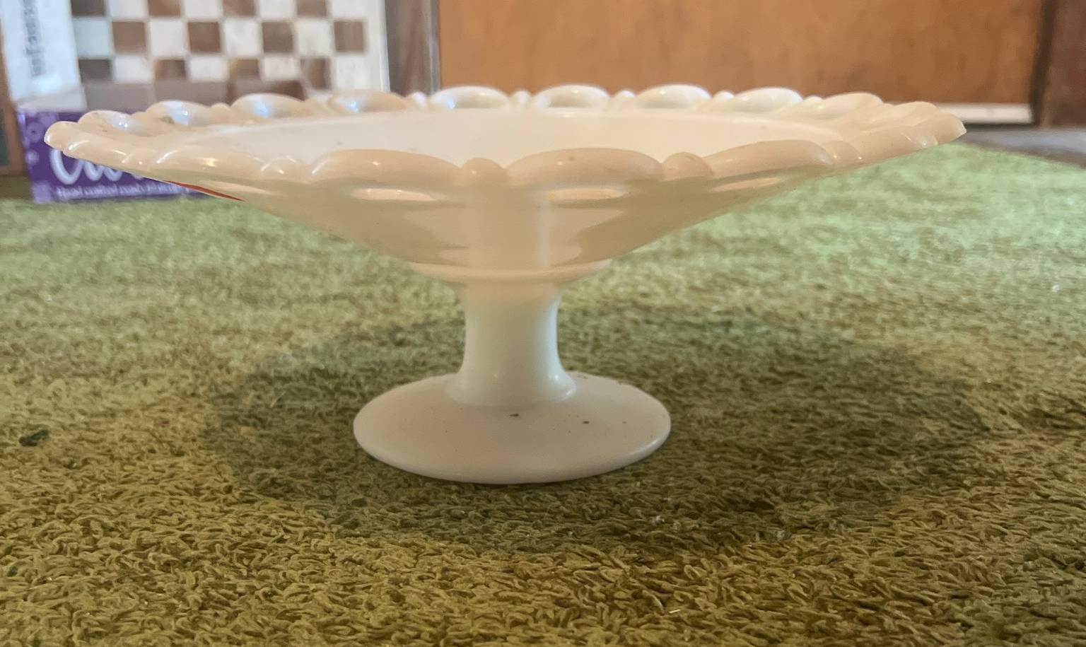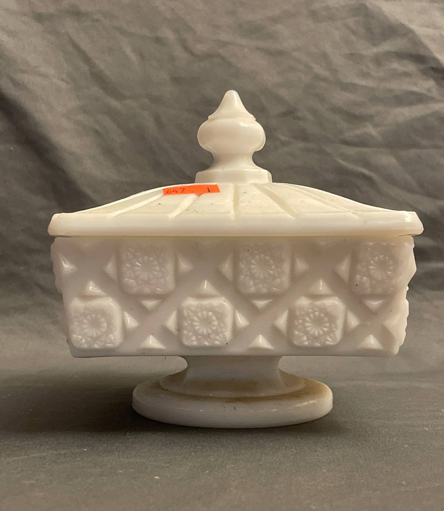 237 Milk Glass Compote with Scalloped Edge Design, 11” x 4”
