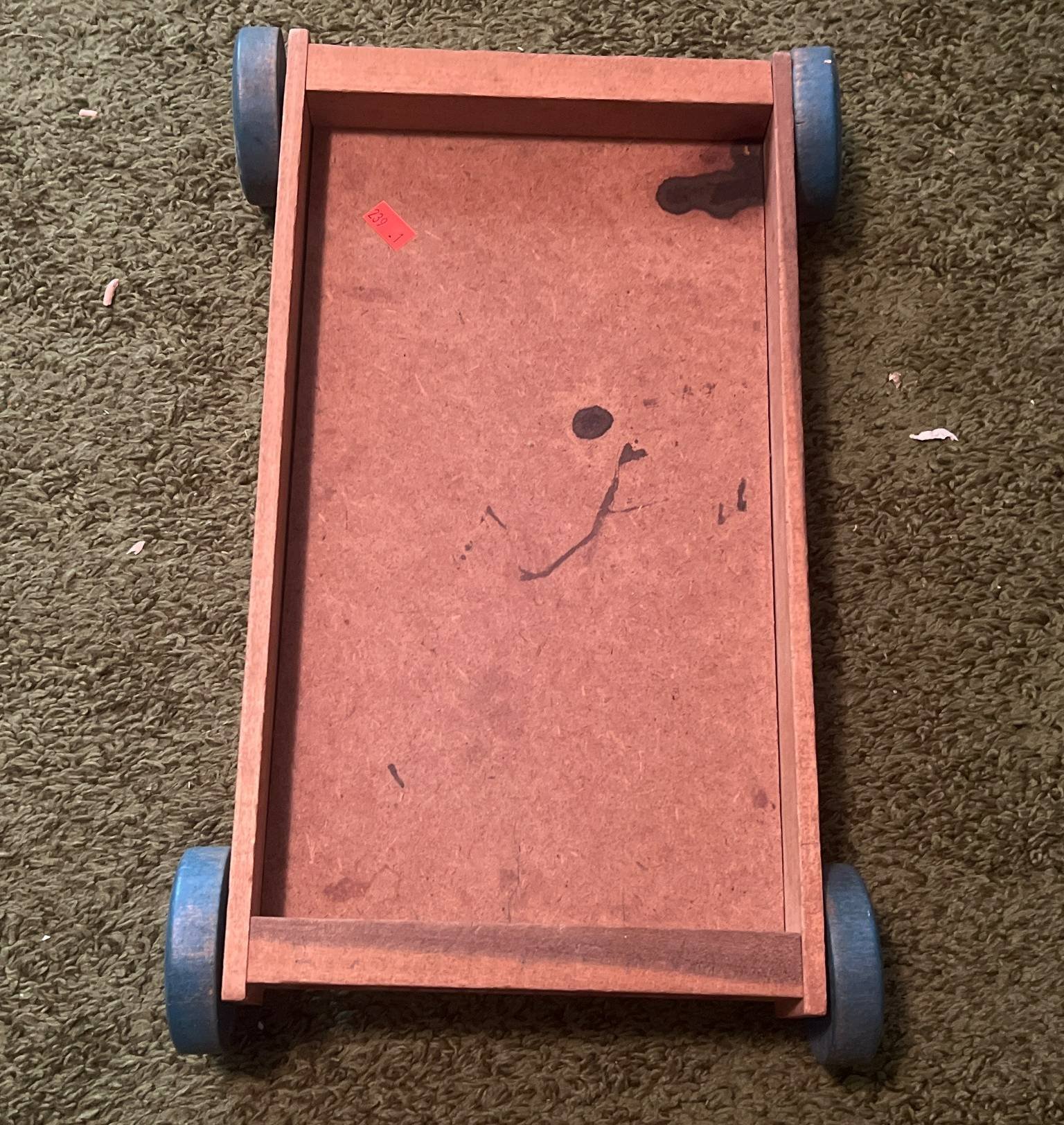 239 Holgate Wood Toy Cart with Blue Wheels, 8” x 14”