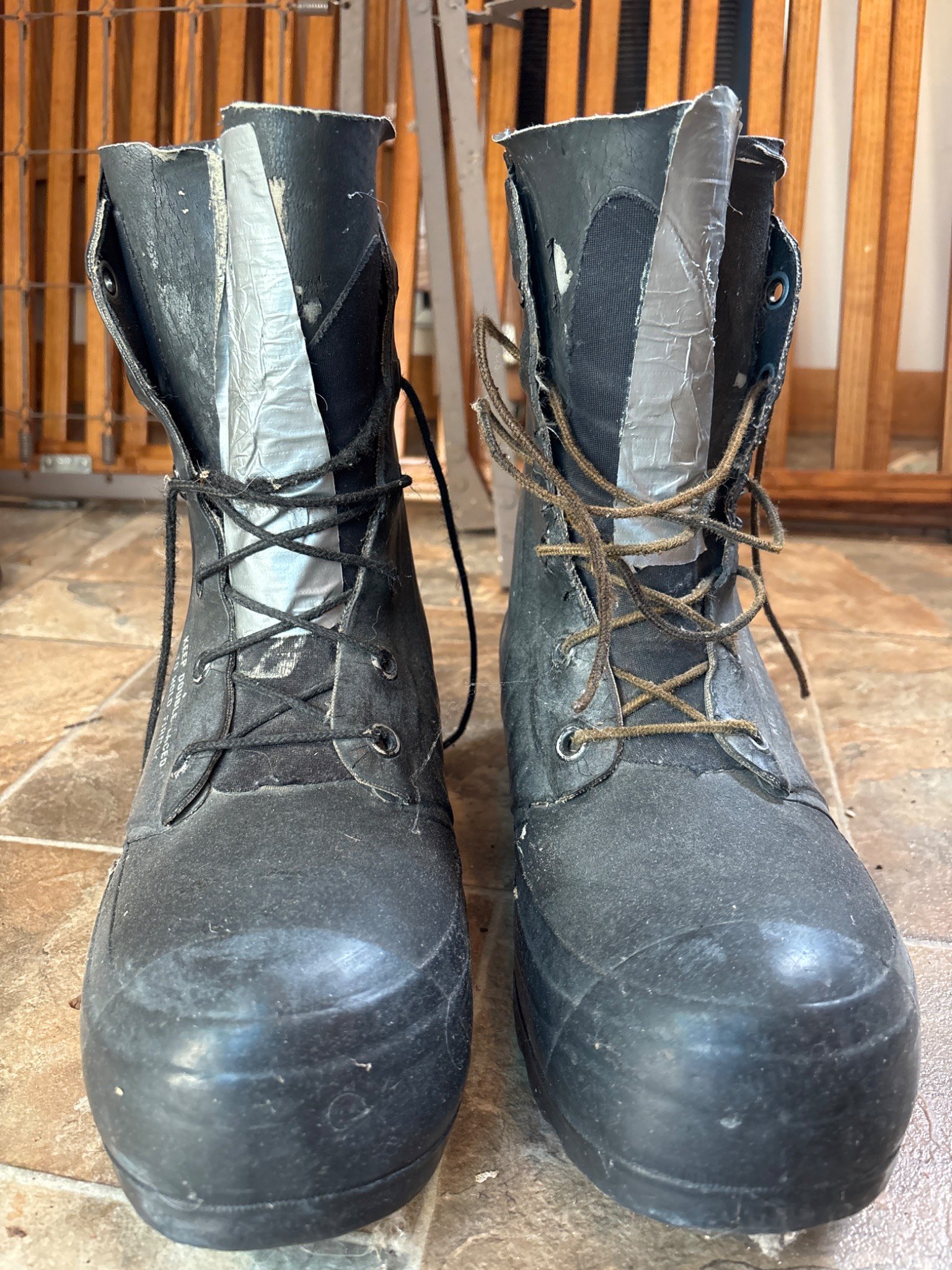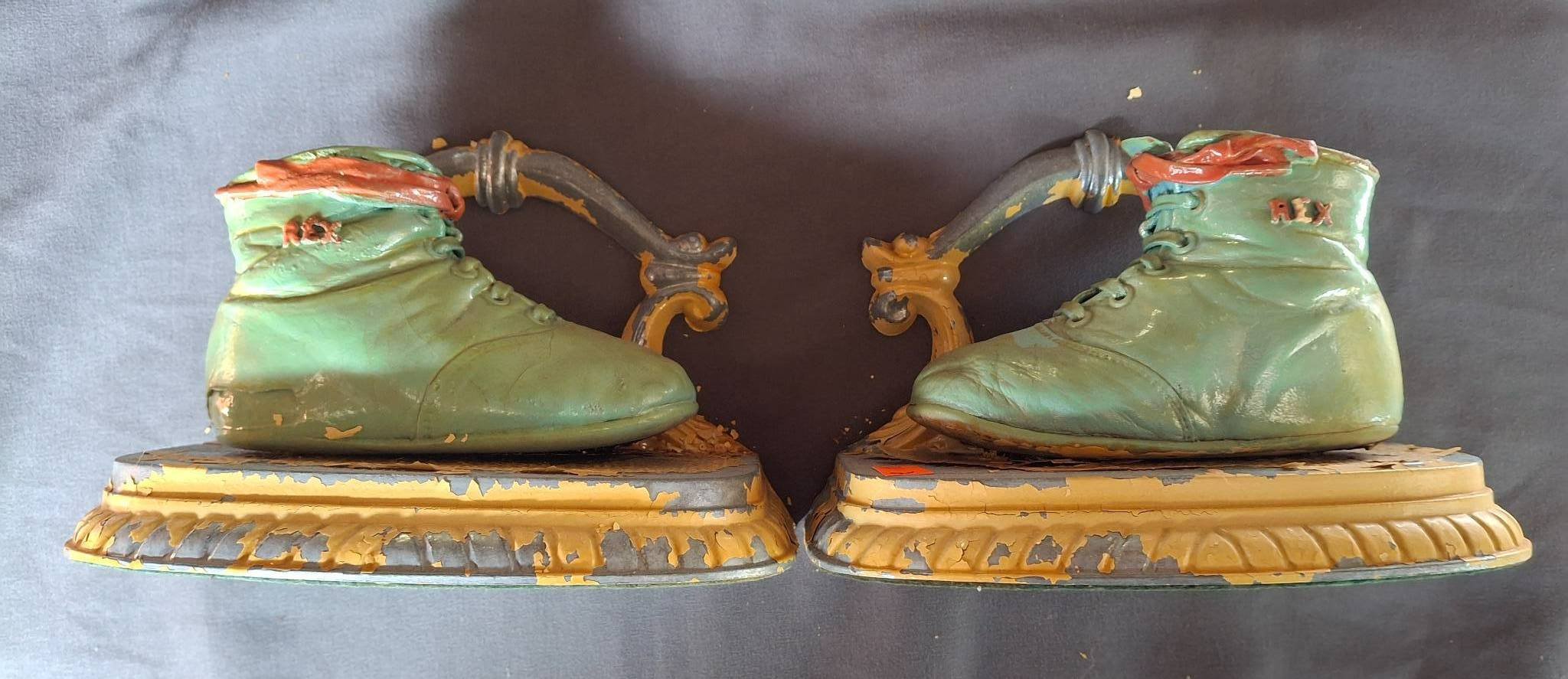 844 Metal Boot-Shaped Bookends with Hand-Painted Details 6?x14? (Paint Chipping)