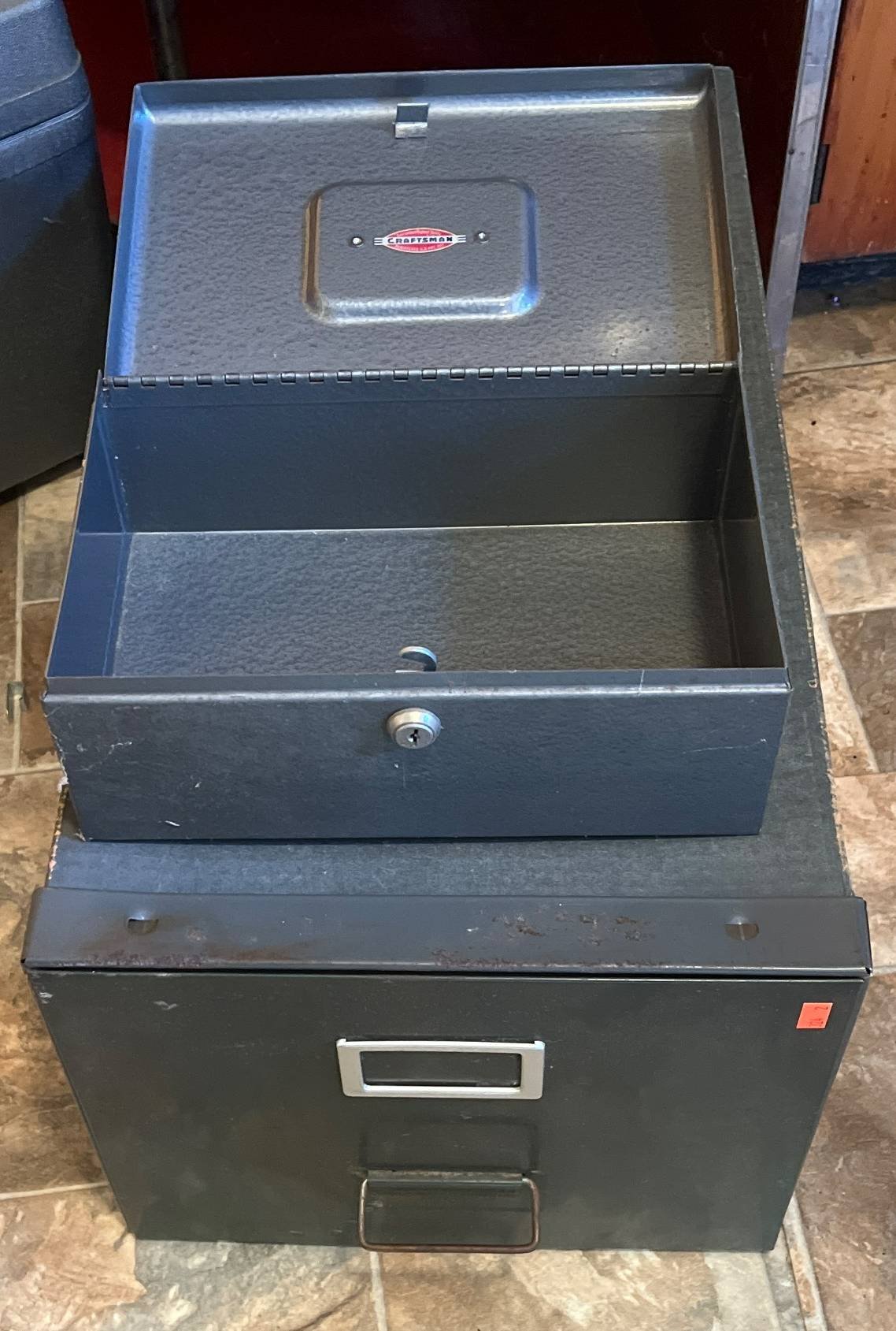 916 Storage Cabinet with Metal Top and Contents, 40x25x40?