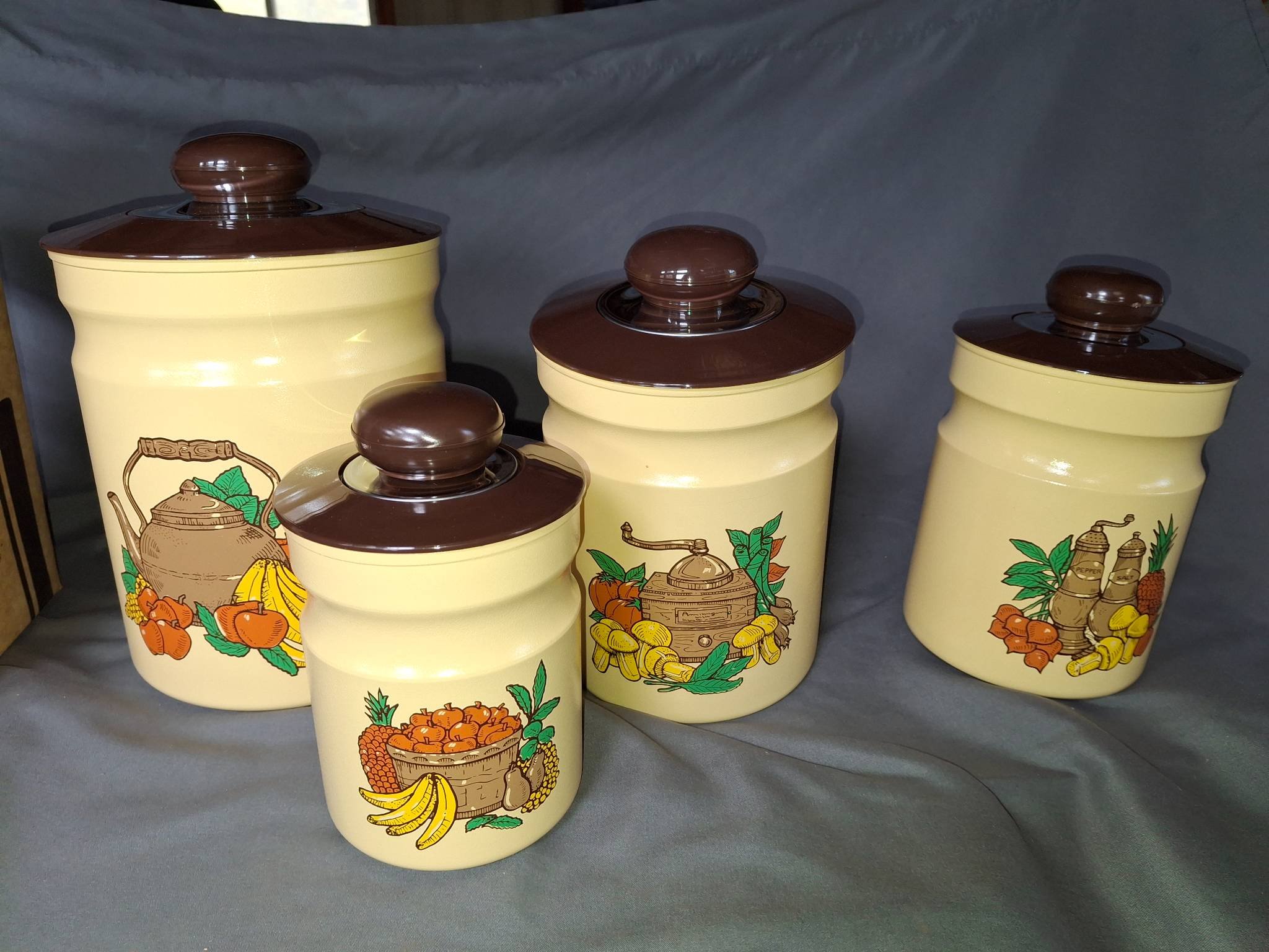 845 Kromex 4-Piece Canister Collection with Lids and Original Box 4?x6?-7?x10?