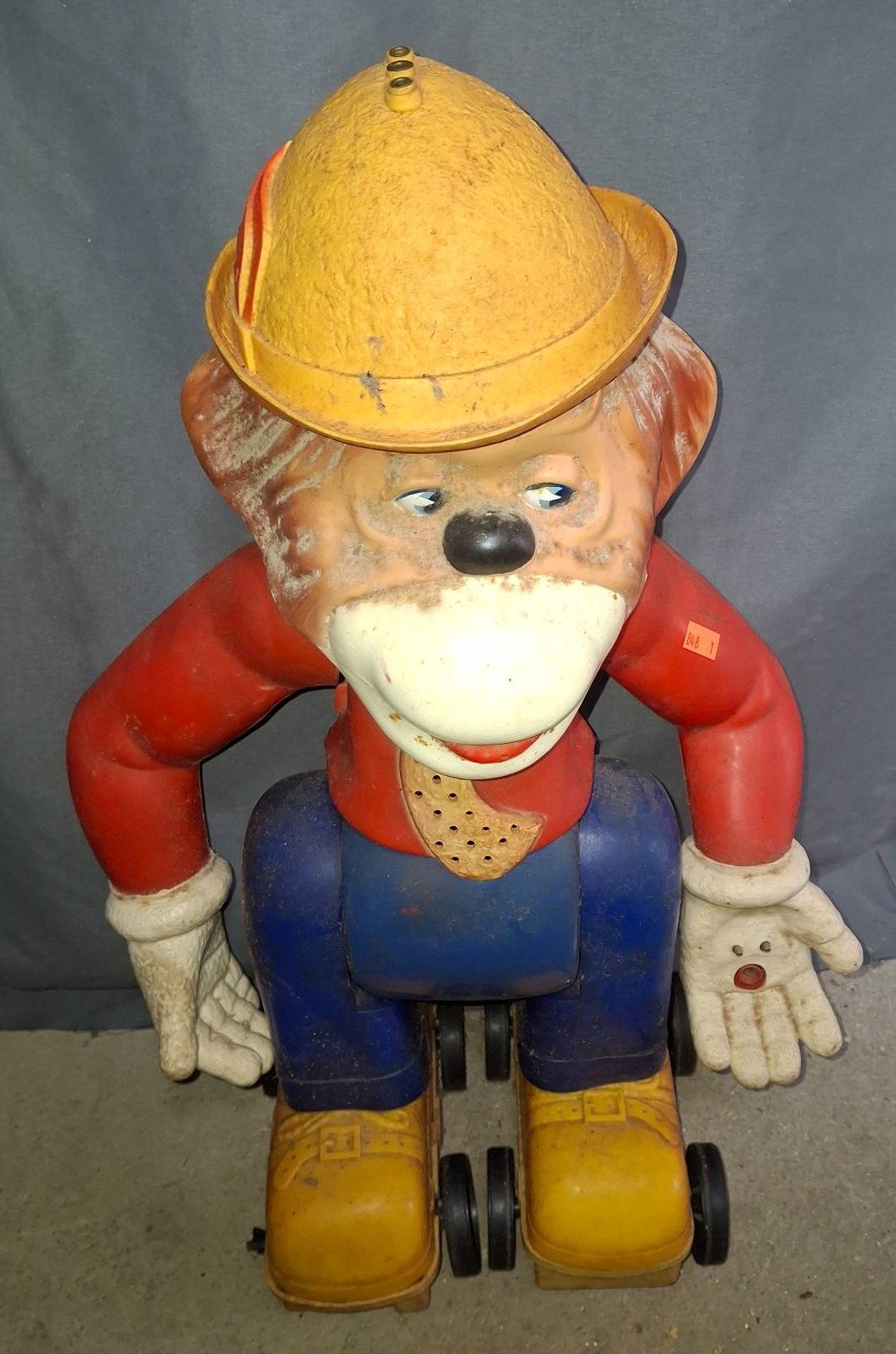848 Plastic Rolling Push Toy with a Worker Character Design 22? Hgt. (arm broken)