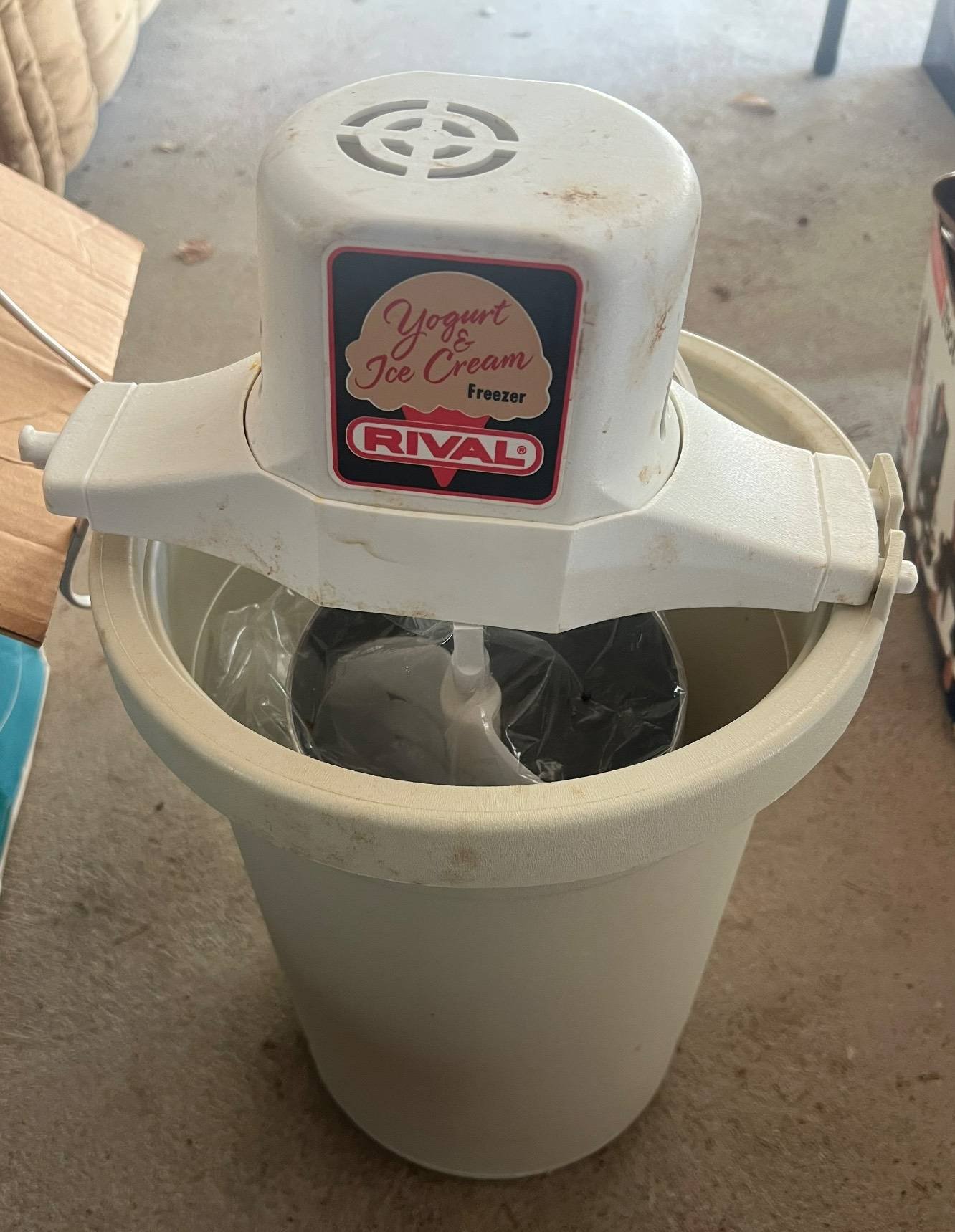 877 Rival Yogurt & Ice Cream Freezer, Model 8405/1, Includes Mixing Cannister, 7.5” x 18”