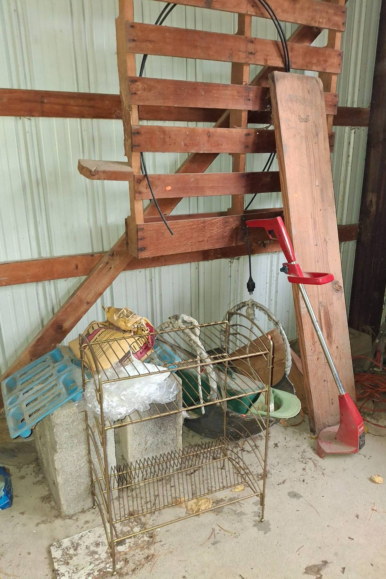 898 Tools, Equipment, and Materials Inc. Weed Eater (broken), Wire Rack, Cinder blocks, tackle box, etc.