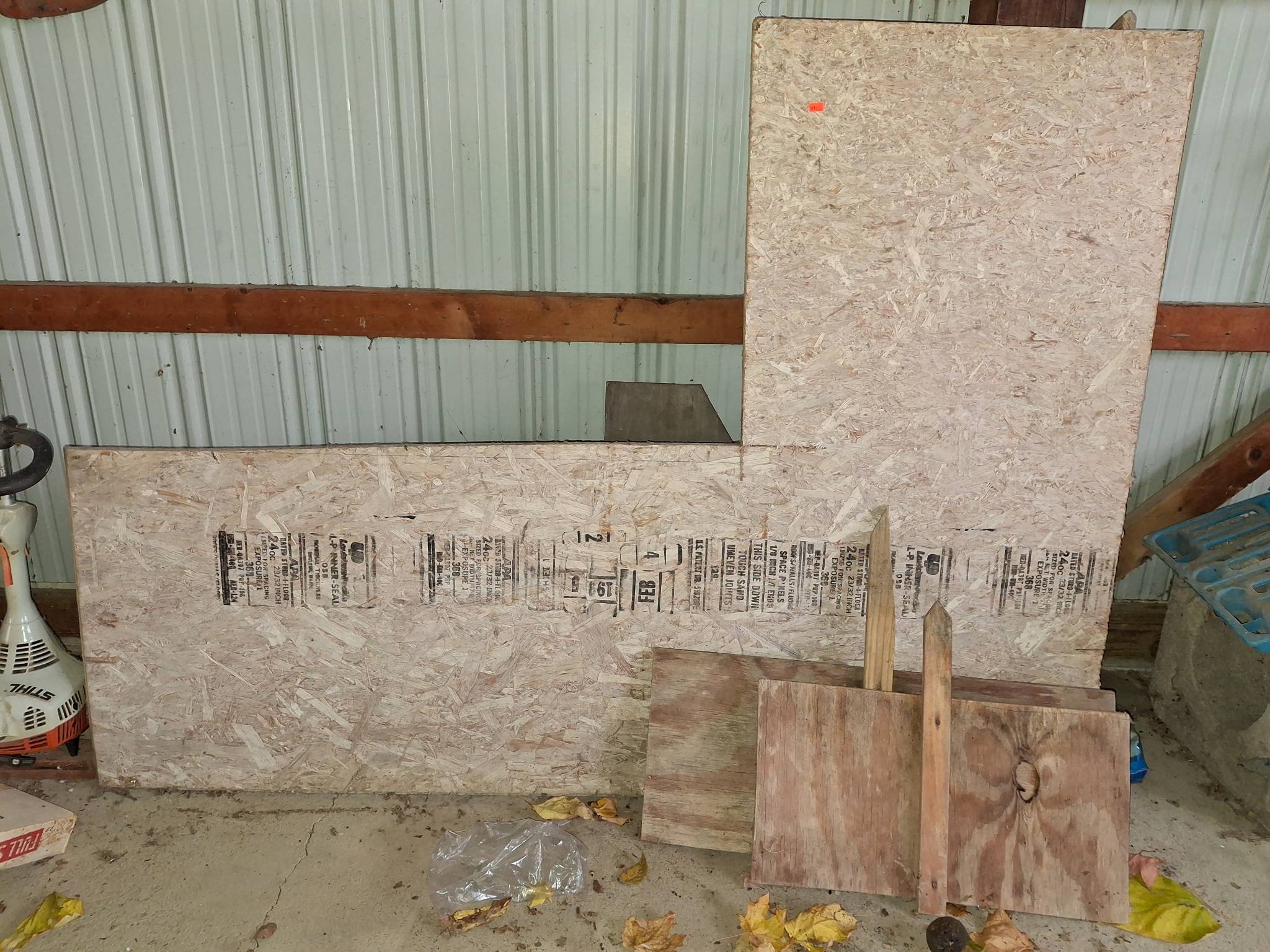 899 3 – Painted Plywood Planks Attached to Wood Stakes & Scrap Plywood, 21?-28? W, 66?x48?