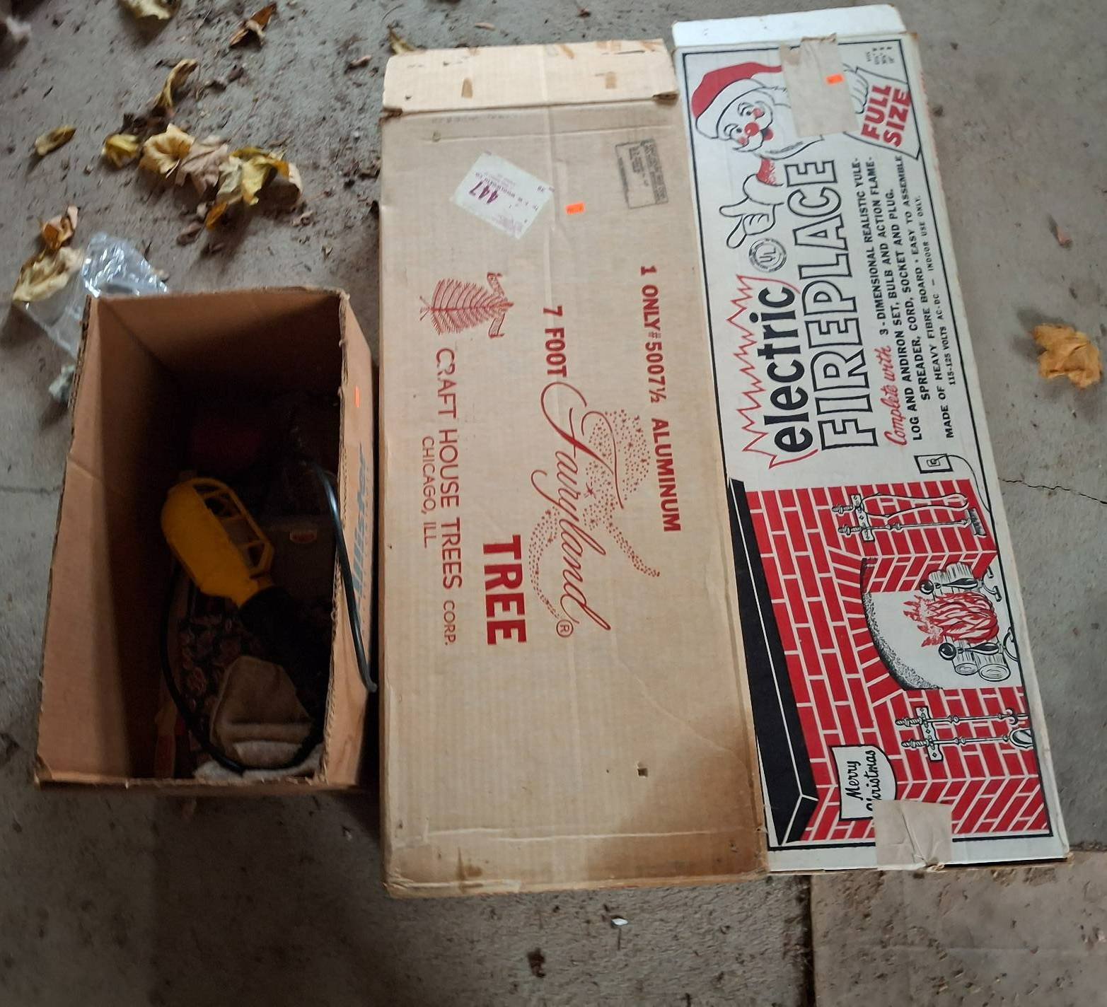 900 Cardboard Electric Fireplace Artificial Tree, Work Light, Etc.