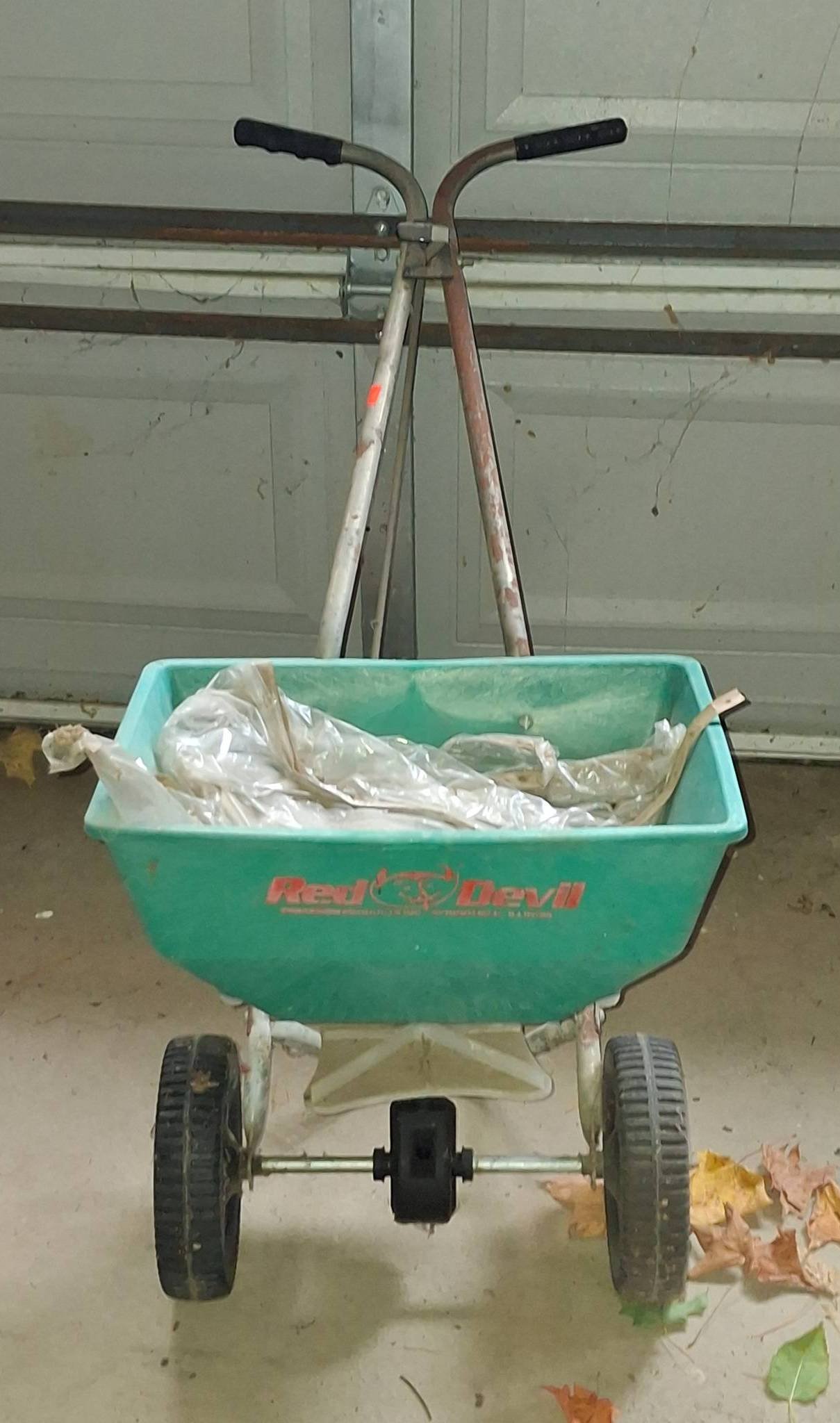 904 Red Devil Broadcast Spreader with Metal Frame and Plastic Hopper 17?x32?x28?
