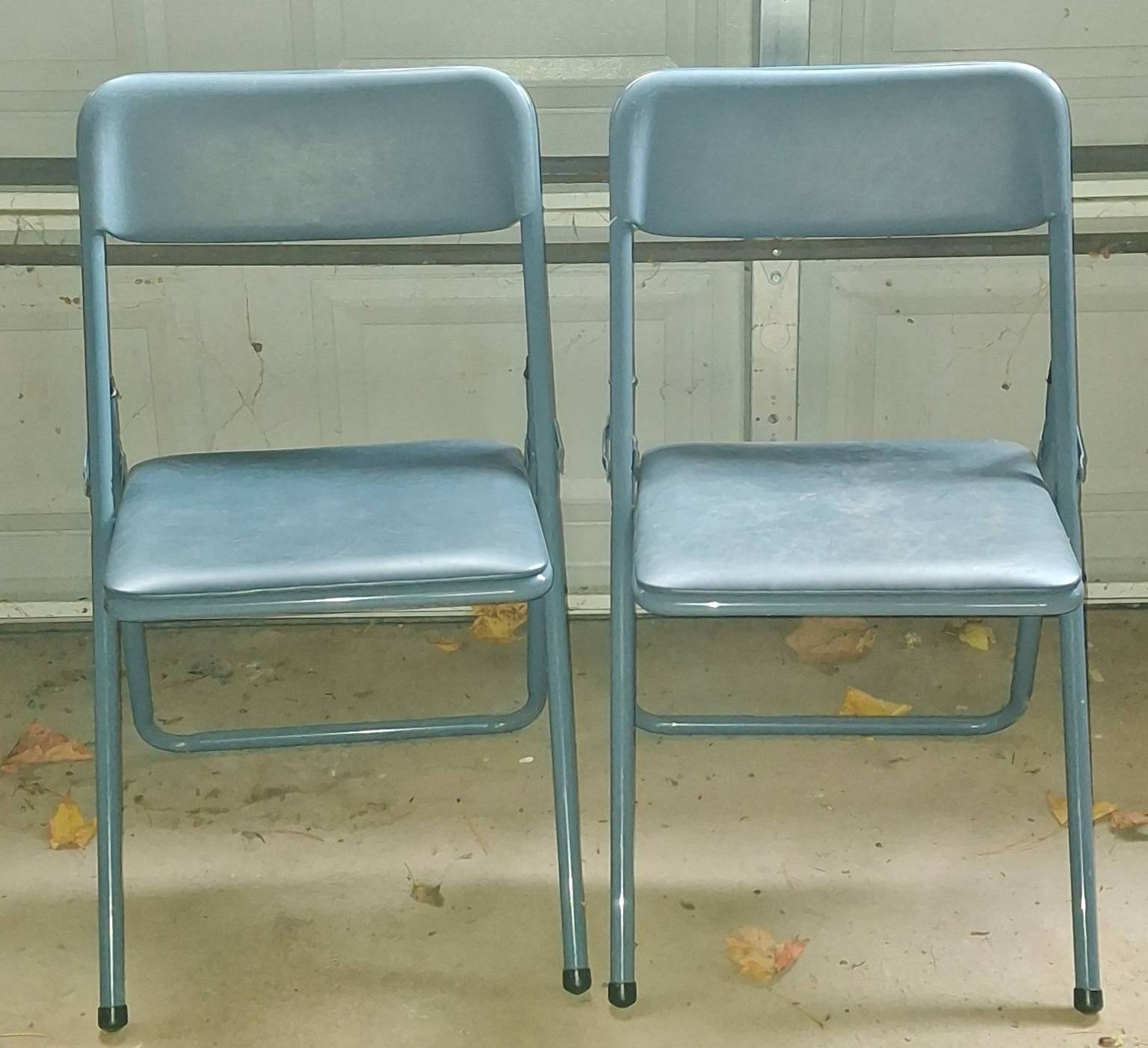907 2 – Blue Folding Metal Chairs with Vinyl Seats and Backrests 15?x20?x30?