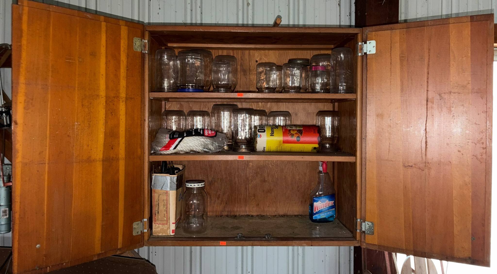 918 Wall-Mounted Cabinet with Glass Jars, Drill, and Household Items, 30x14x30?