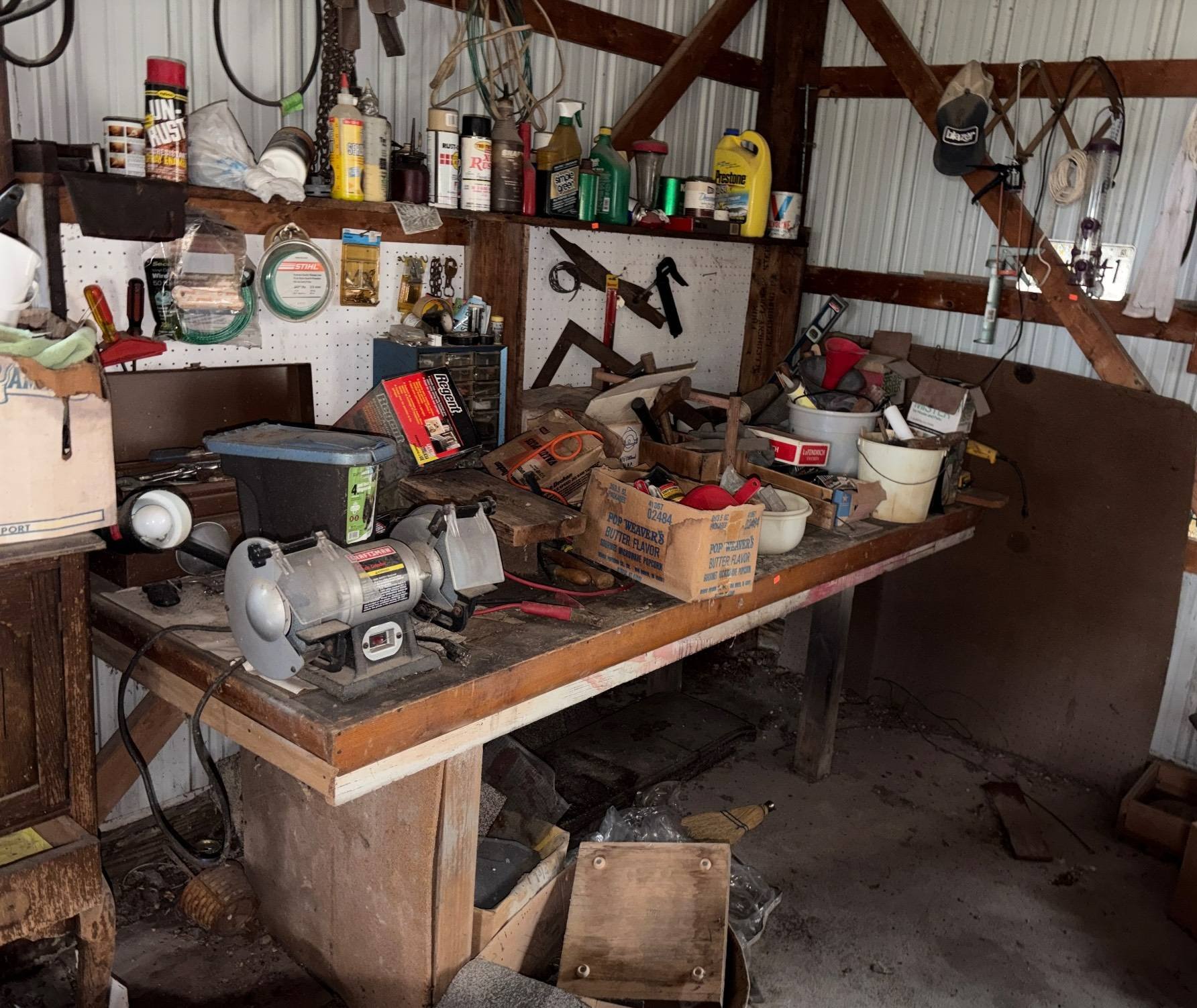 919 Work Bench with Craftsman 6-In. Grinder and Assorted Contents