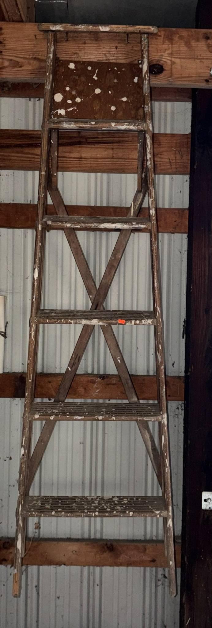 927 Wood Ladder with Flat Top and Cross-Braced Design, 6?