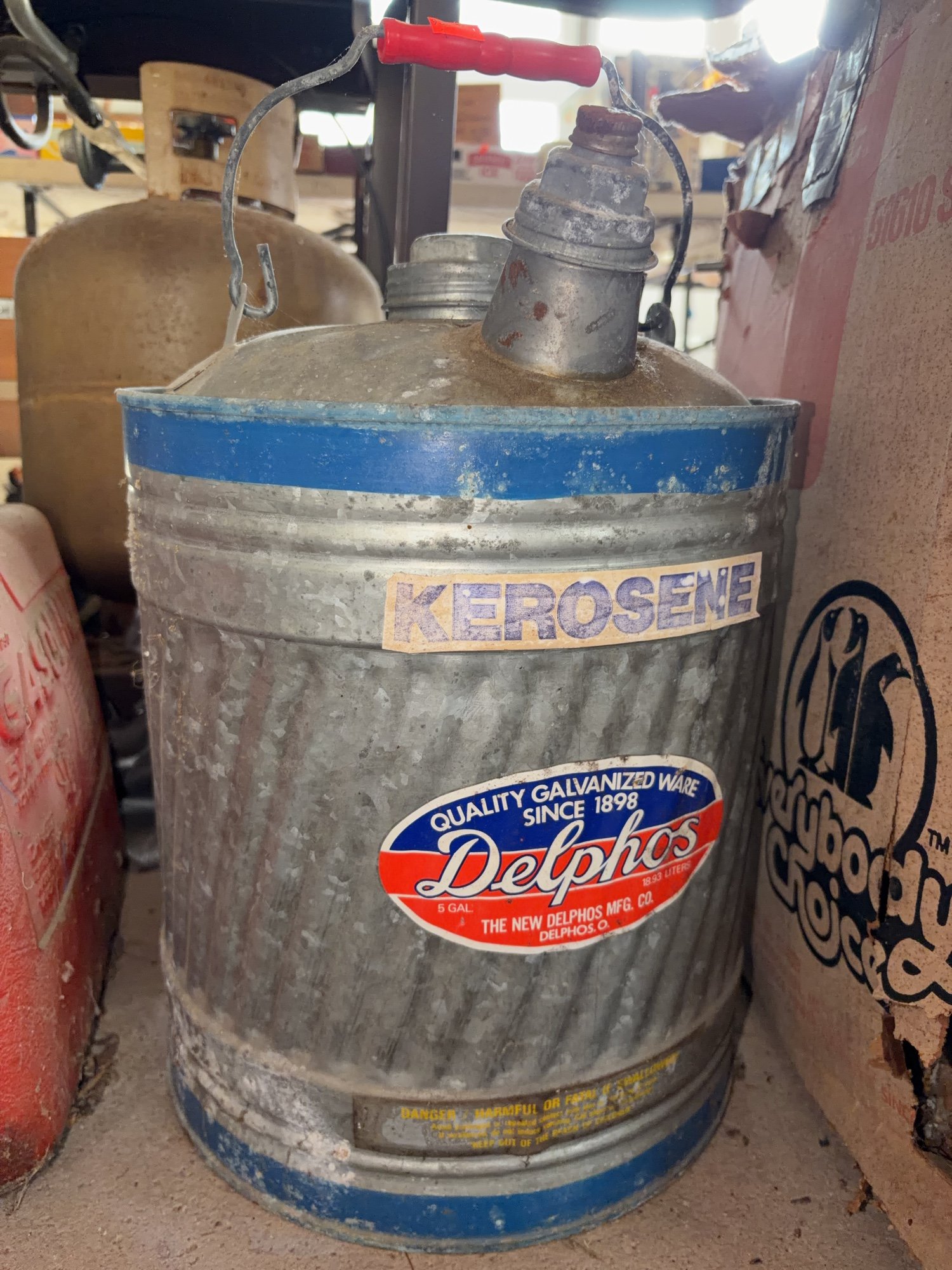 932 Delphos galvanized kerosene can 16”H