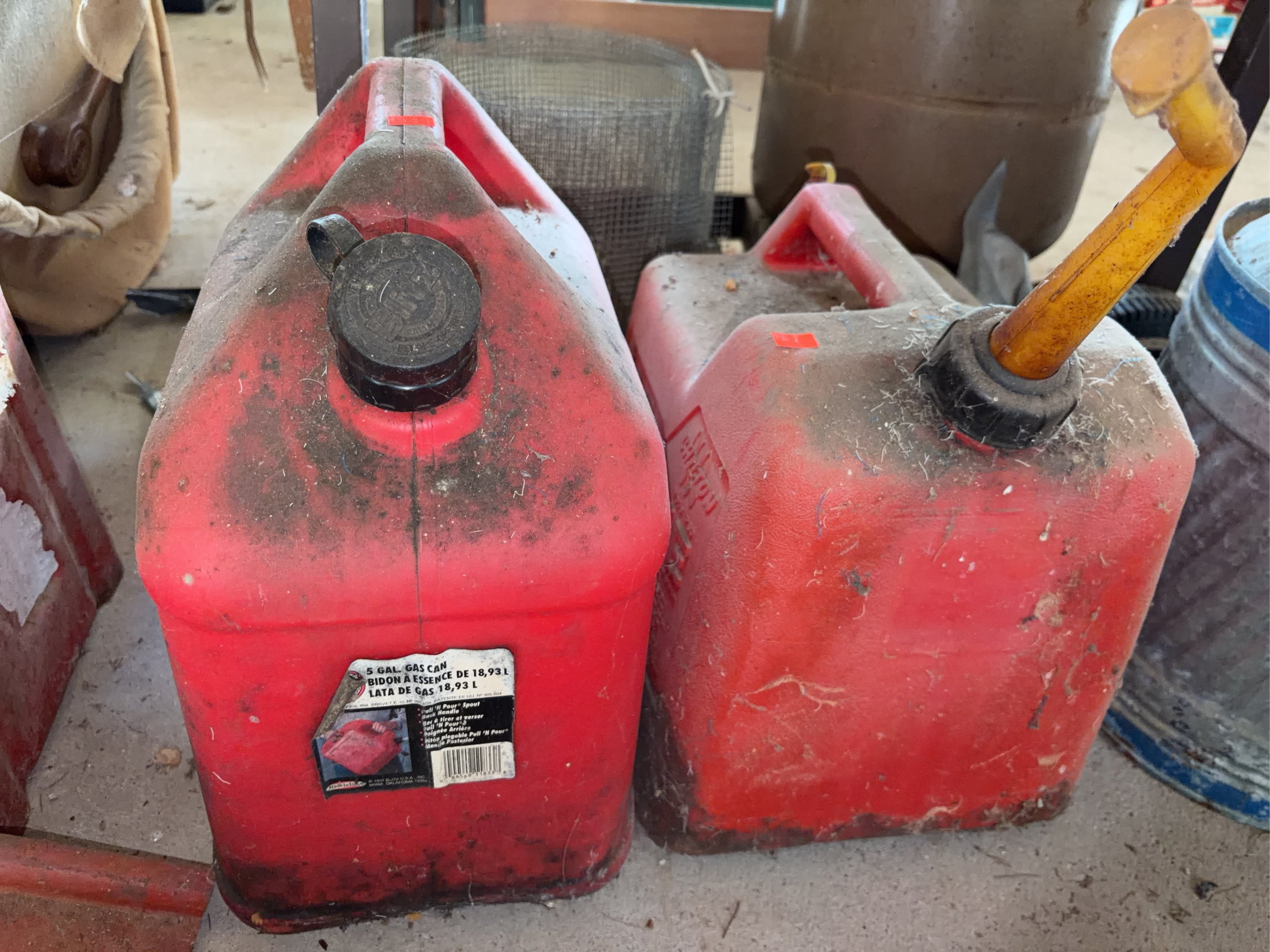 933 Two gasoline cans 5-1/4gal. Partially full