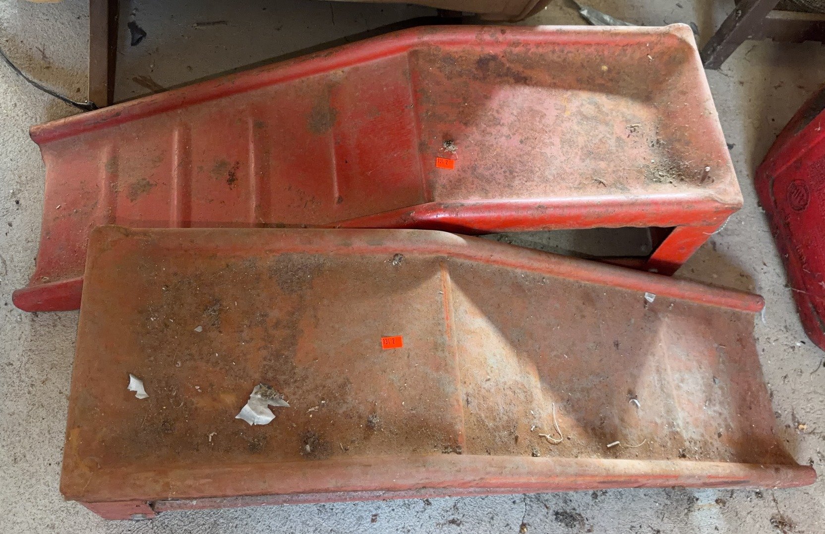 934 2 red metal vehicle ramps 34”x10”x10”