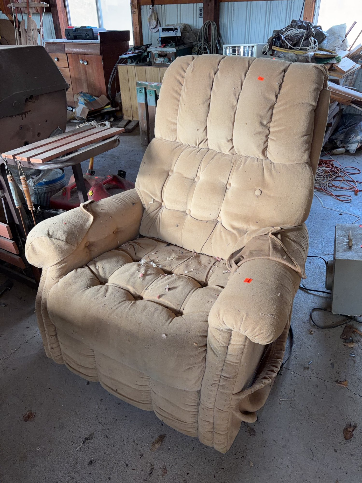 936 Lazyboy Tan/light yellow reclining chair (cosmetic damage) 18” floor to seat