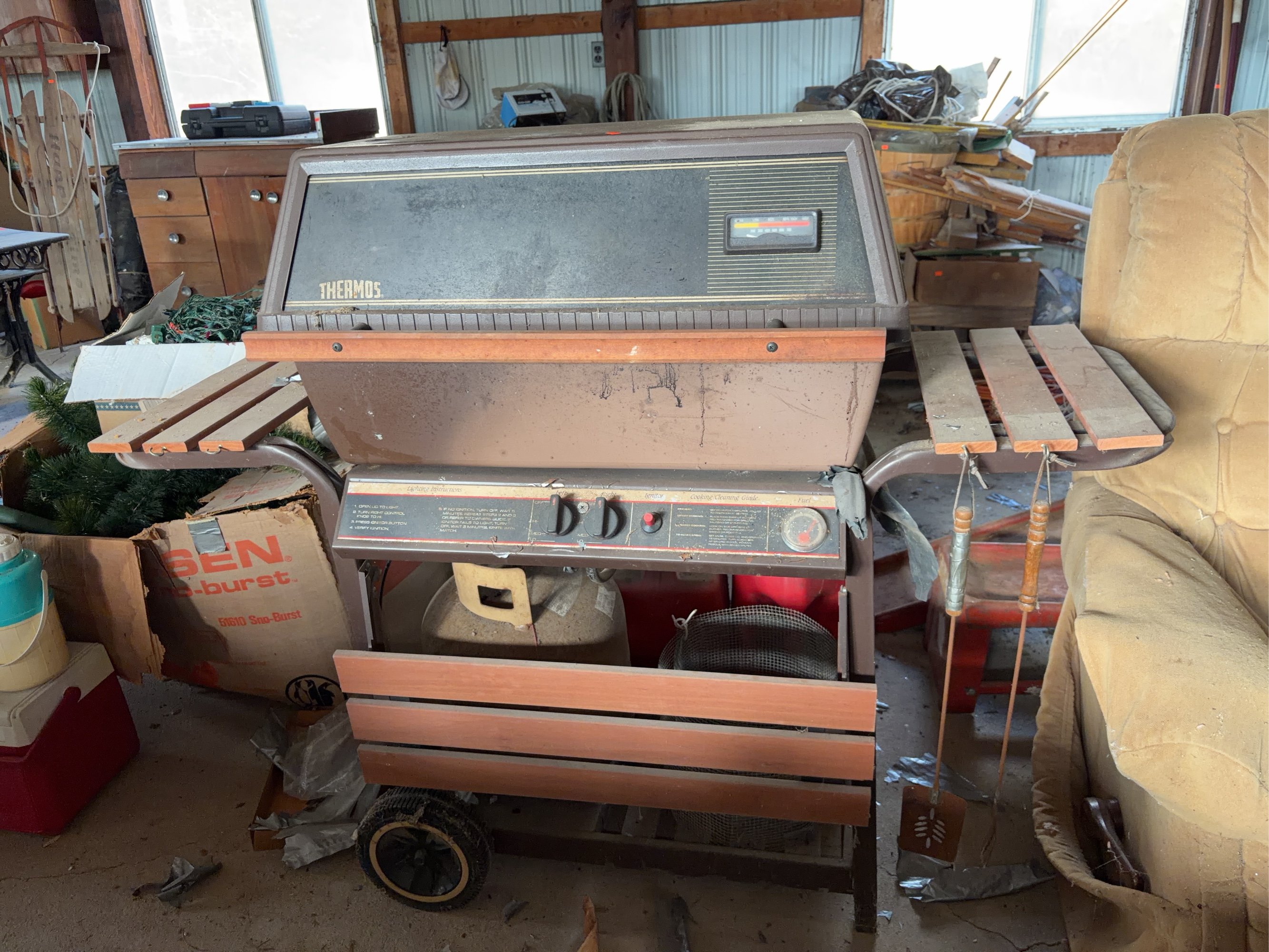 937 Thermos gas grill (unknown condition) 50”x21”x46” tank partially full