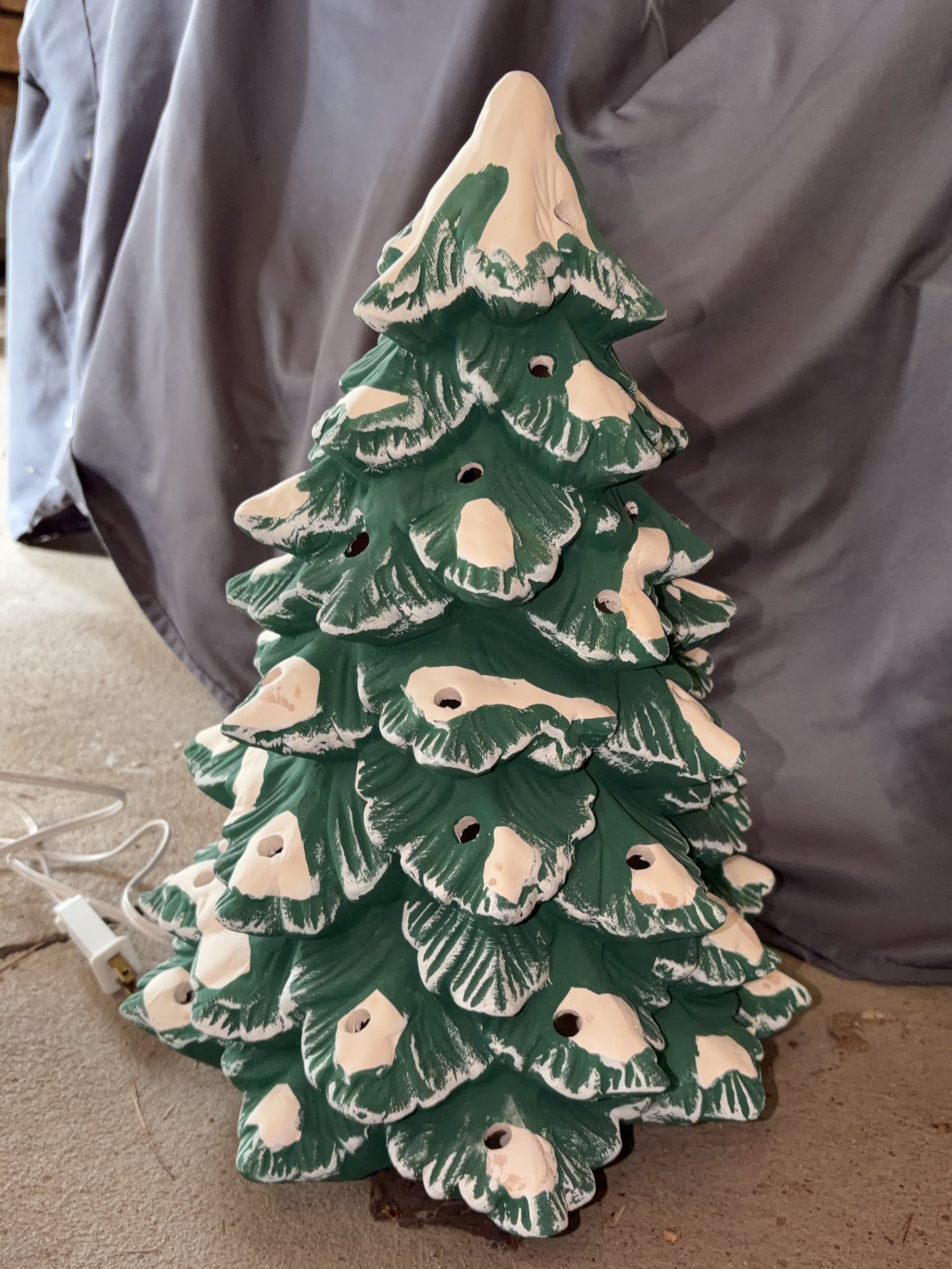 939 Ceramic Christmas Tree with Light Inserts & Original Box -- Trim a home illuminated porcelain Christmas tree in original box, 16”H