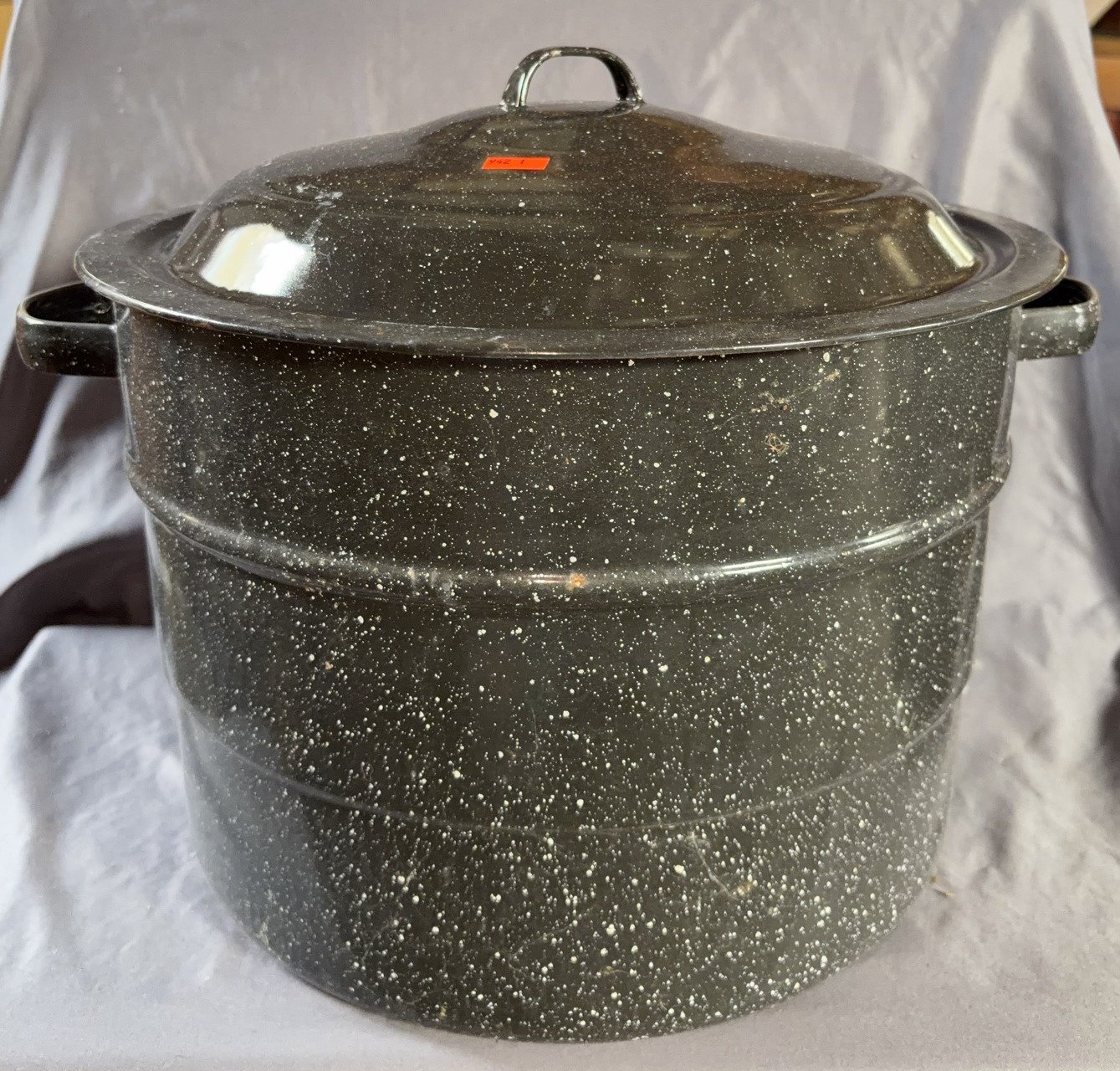 942 Black enamel stock pot with lid, 10”x13”dia.