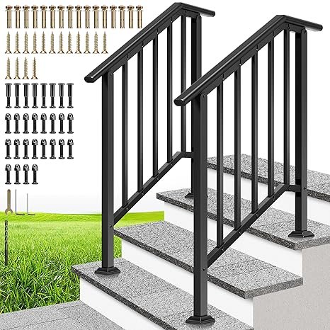 461061 VIVOHOME - VIVOHOME 2-Pack 3 Step Galvanized Steel Hand Rails for Outdoor Steps – Black Oval and Safety Balusters Exterior Railing for Porc