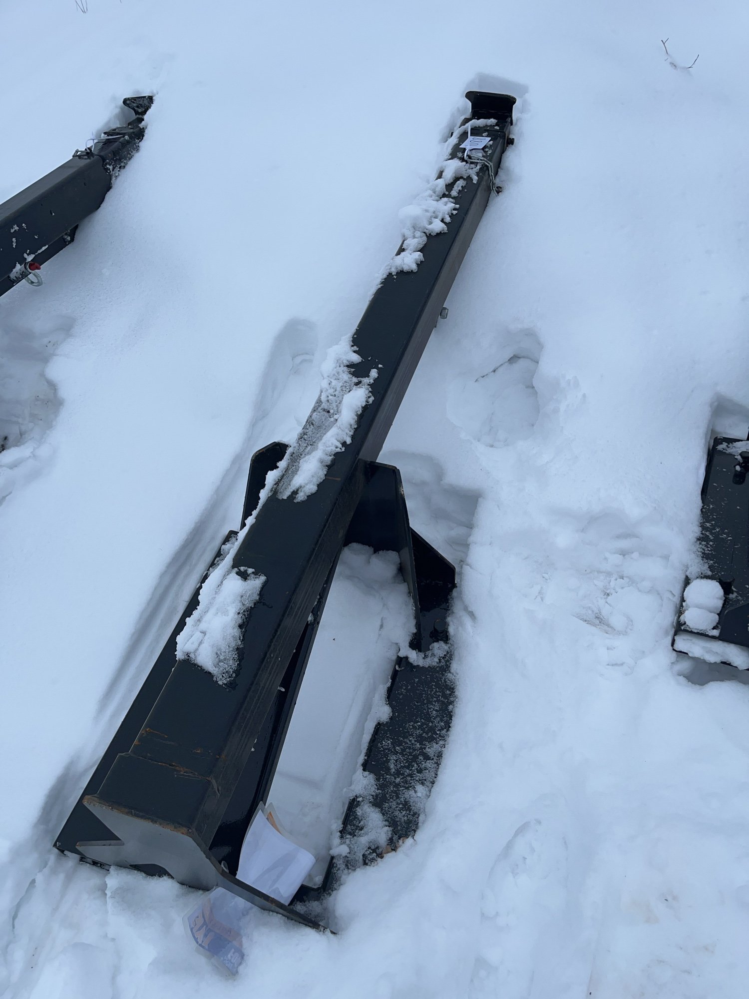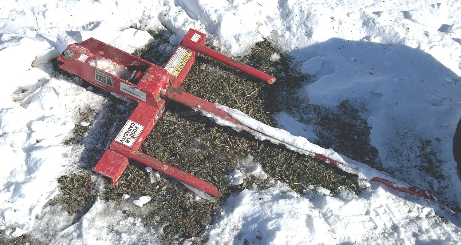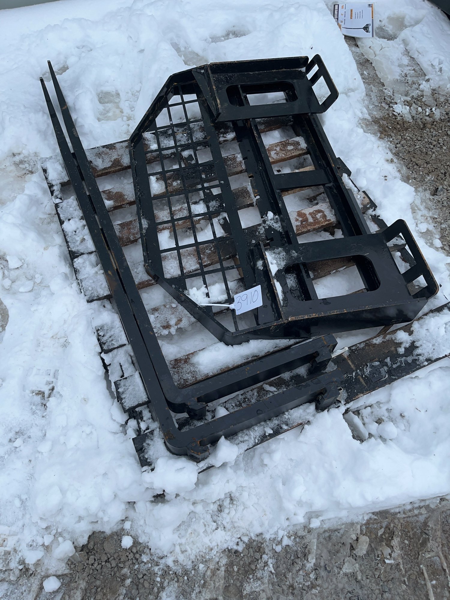 3945 New quick attach frame containing hitch receiver; pallet fork mast and brackets for bale spear- back plate only! No forks or spears included